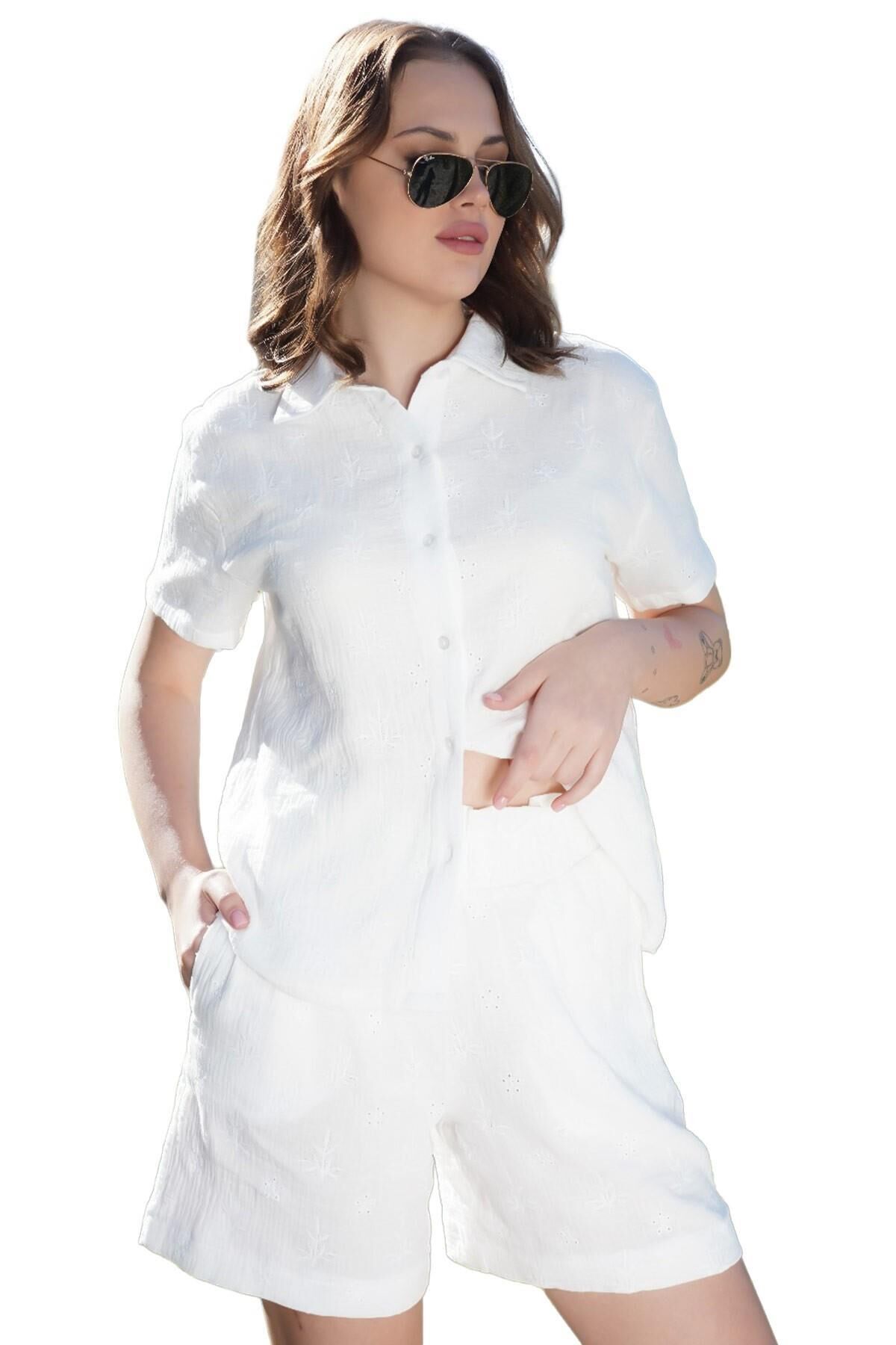 Mısırlı Kadın Pamuklu Kısa Kollu Şort Pijama Takımı