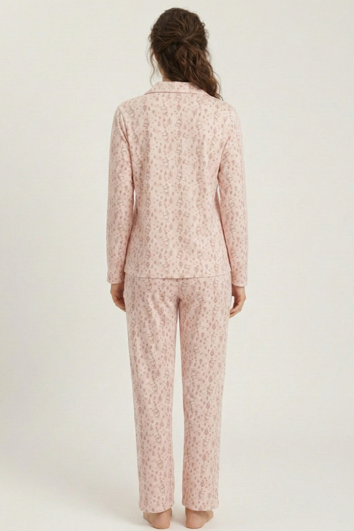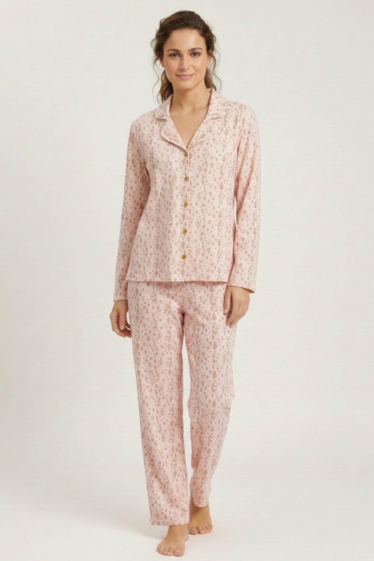 Uzun kollu gömlek tasarımı, rahat ve şık bir görünüm sunarken; açık pembe renk ve tavşan desenleri ile sevimli ve eğlenceli bir stil oluşturur.