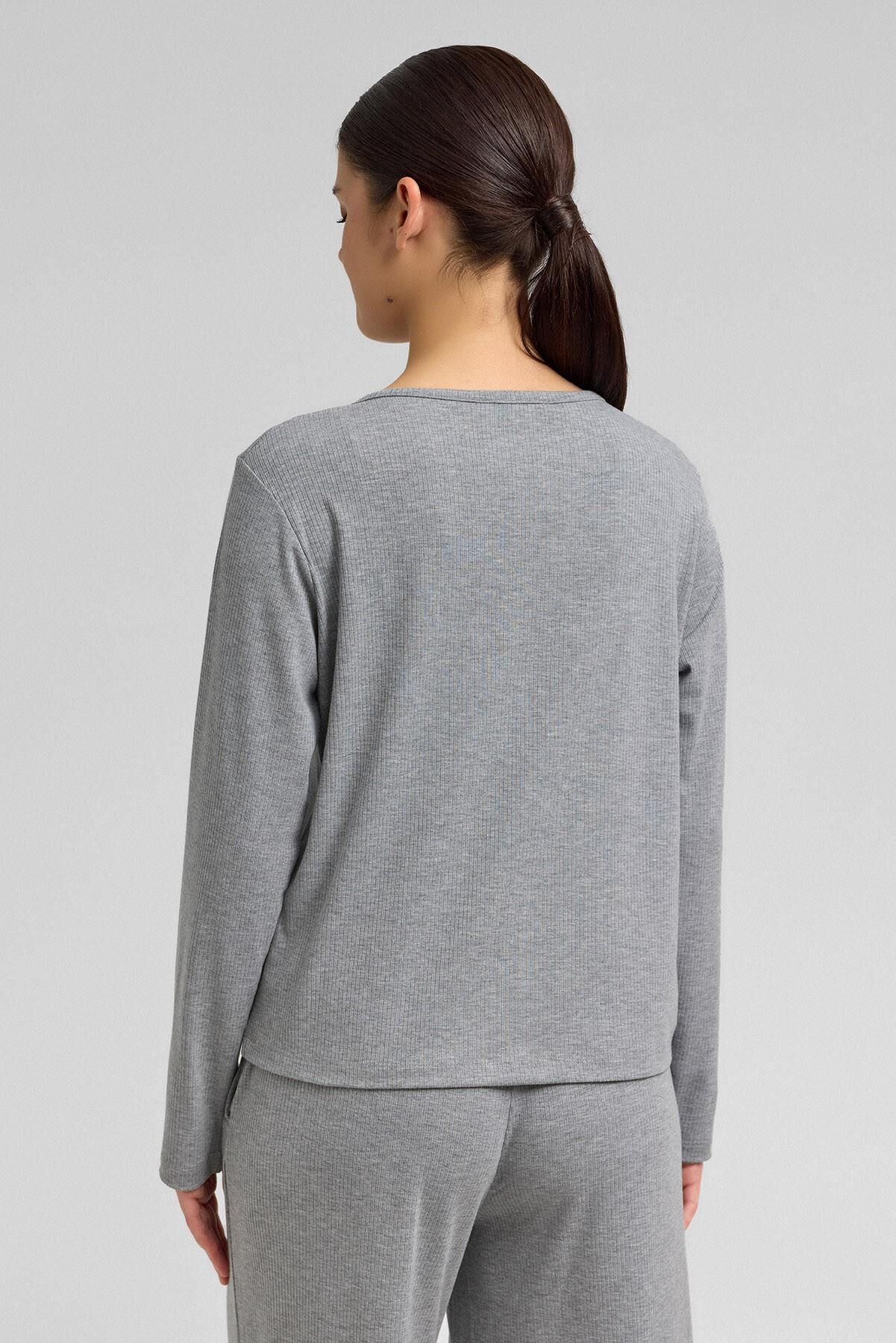 Kadını Kaşkorse Uzun Kollu Sweatshirt Gri Melanj