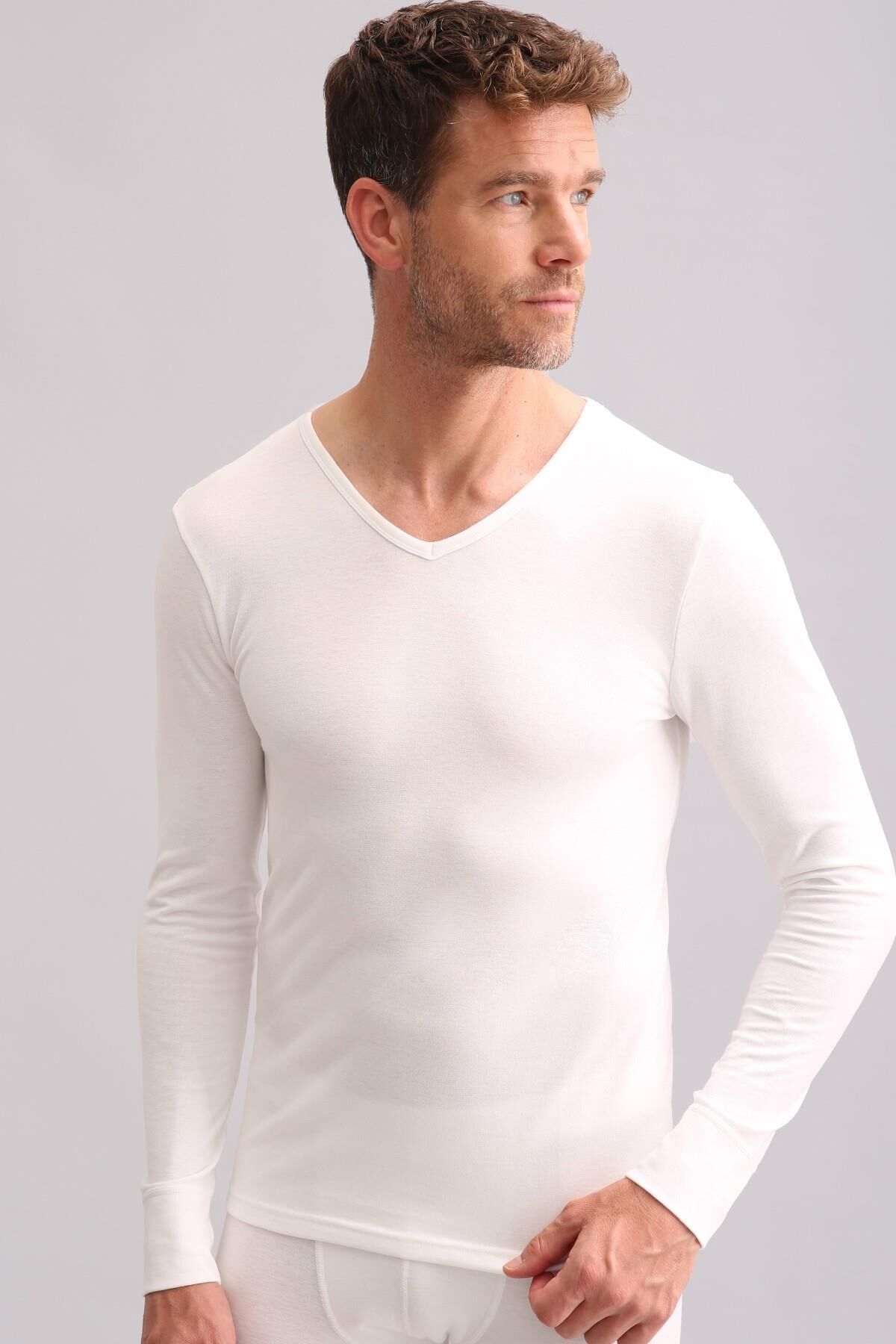 Mısırlı BAMBU TERMAL V Yaka Uzun Kollu Fanila / Sweatshirt Ekru
