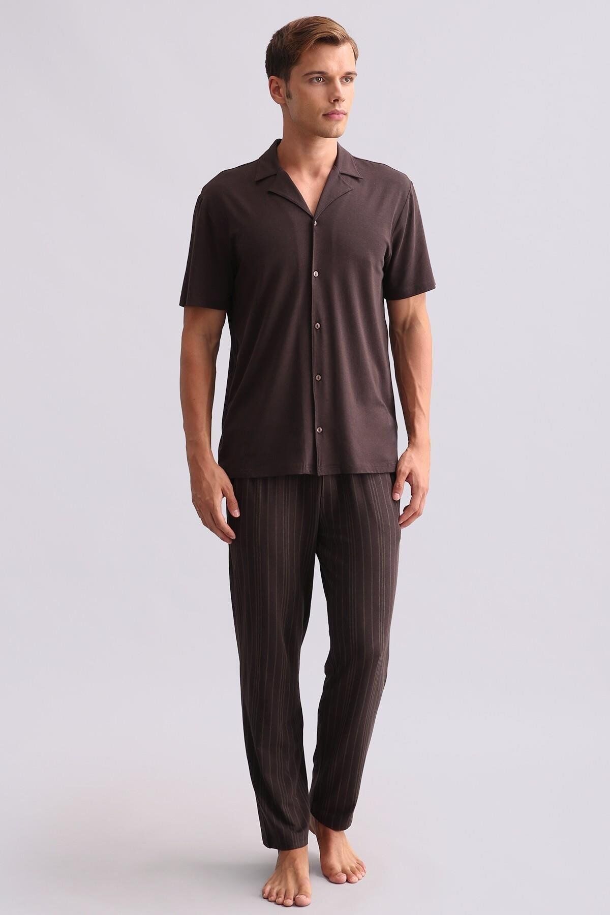 Mısırlı Erkek Bambu Kısa Kollu Gömlek Kahverengi