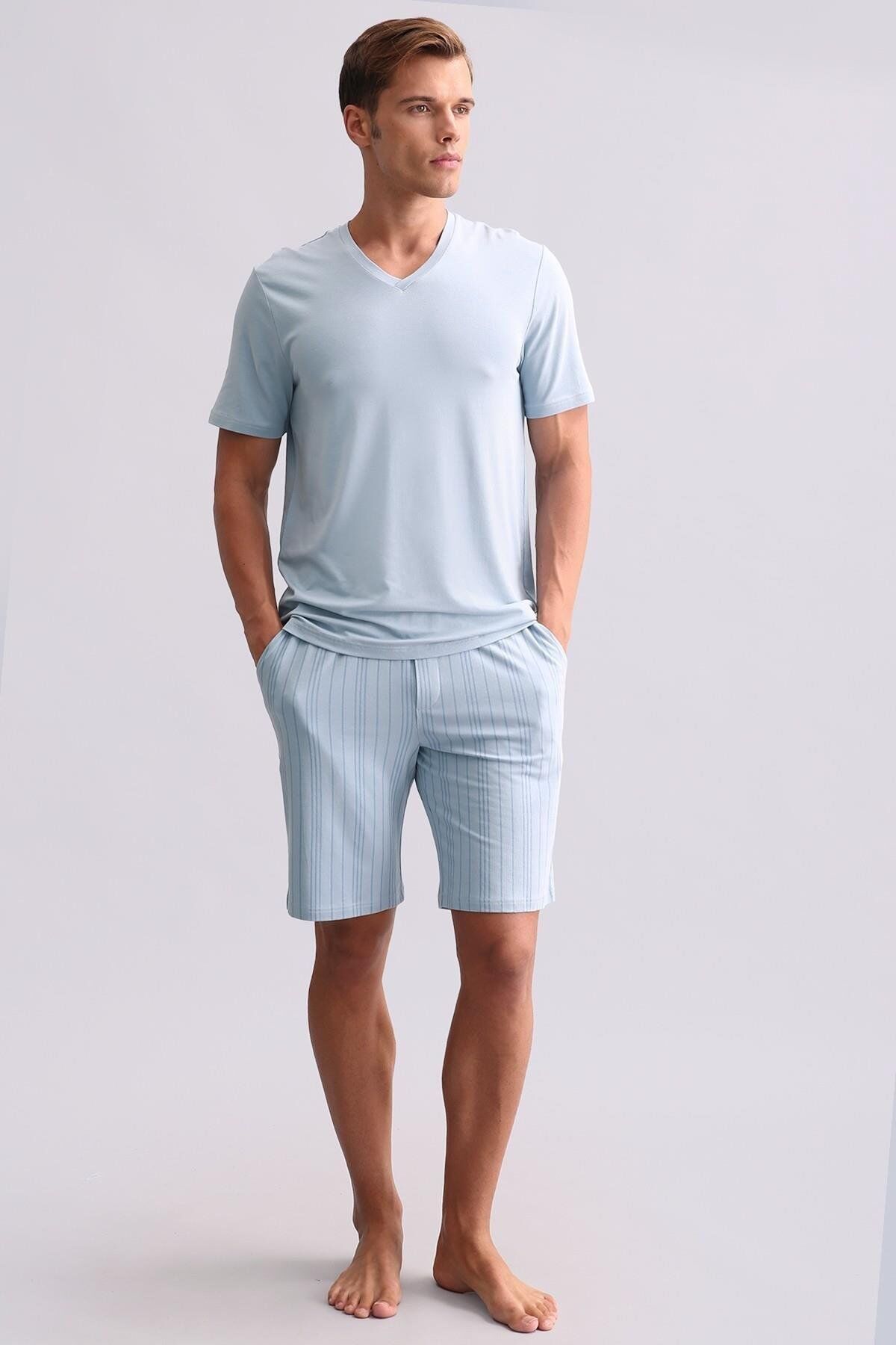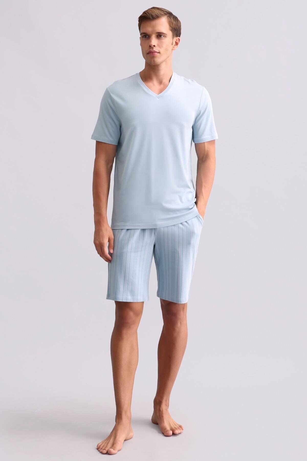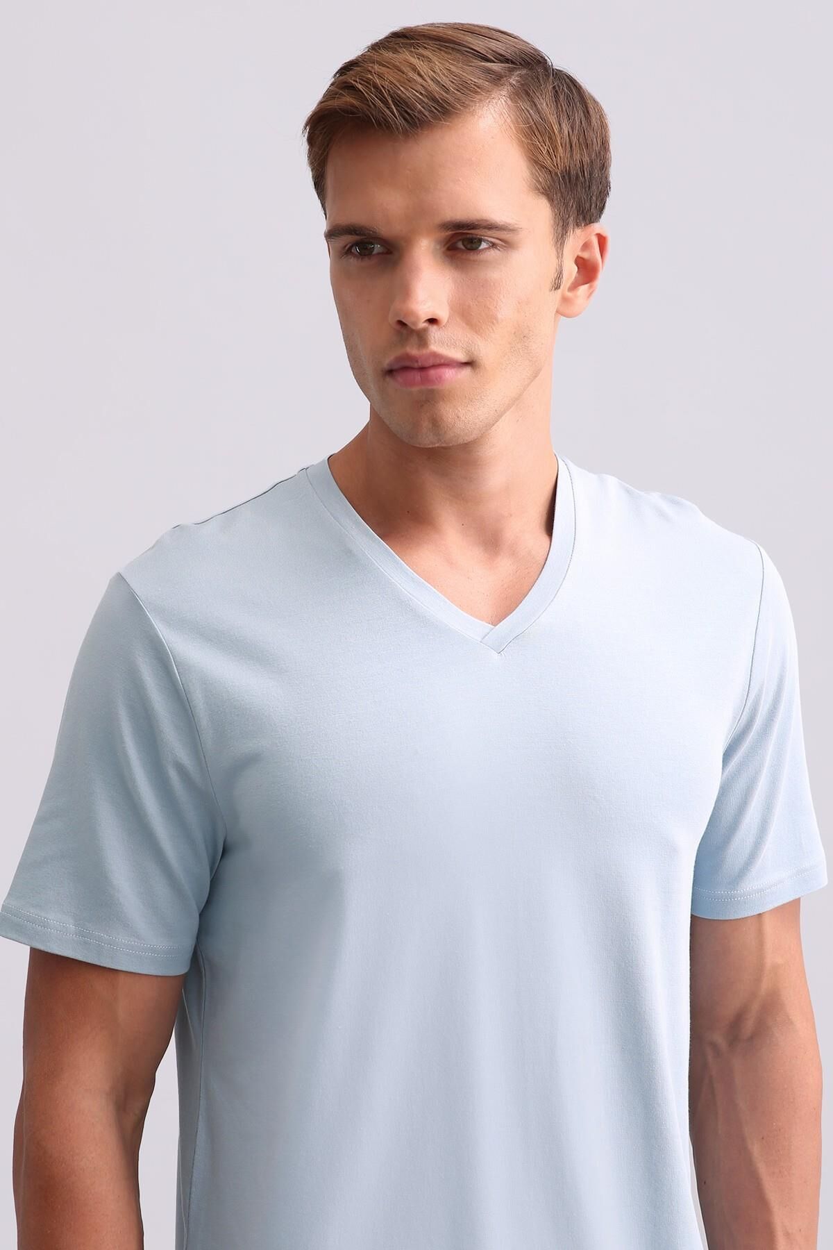 Mısırlı Erkek Bambu V Yaka Tişört Mavi