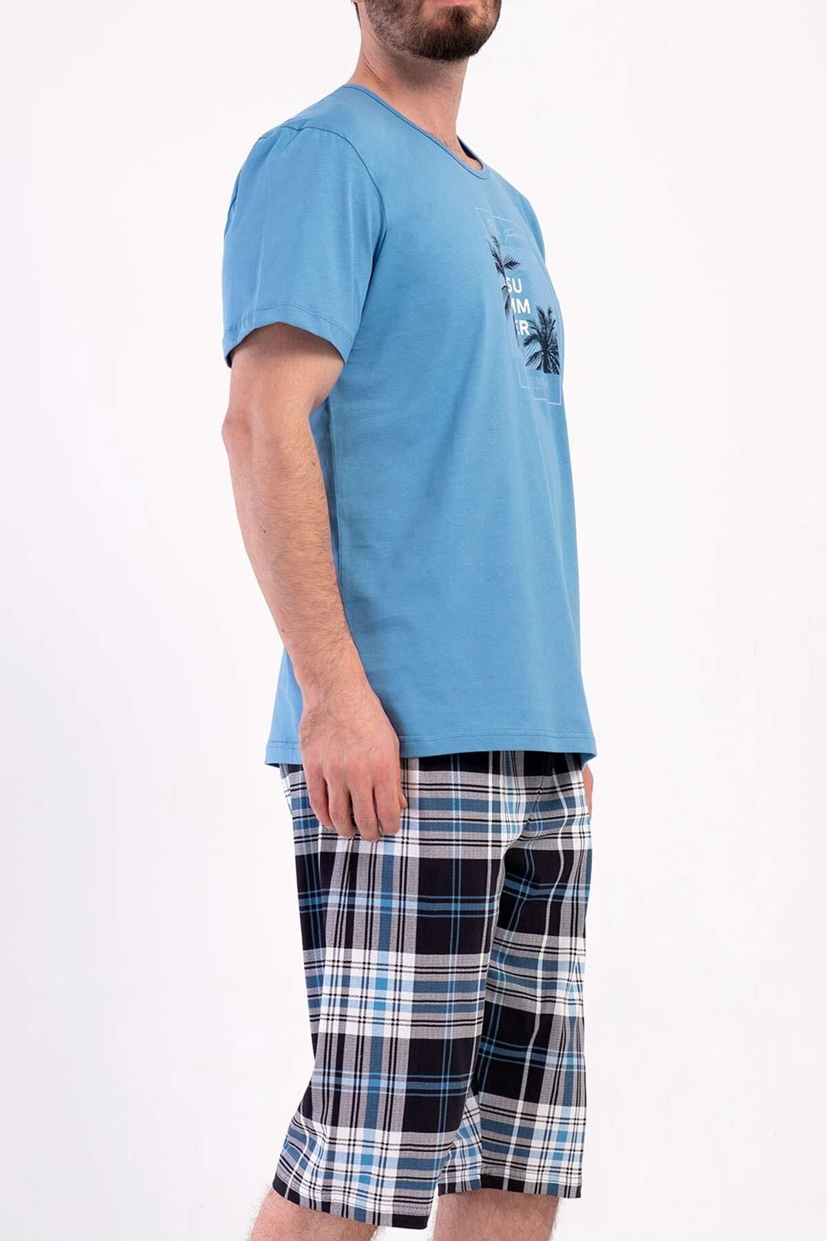 Mısırlı Erkek Desenli Kısa Kollu Kapri Takım Mavi
