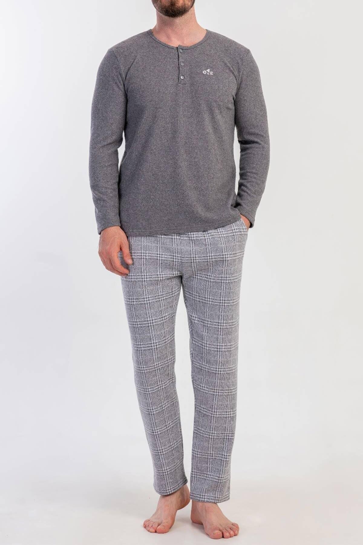Mısırlı Erkek İnterlok Ekose Desenli Uzun Kollu Pijama Takımı