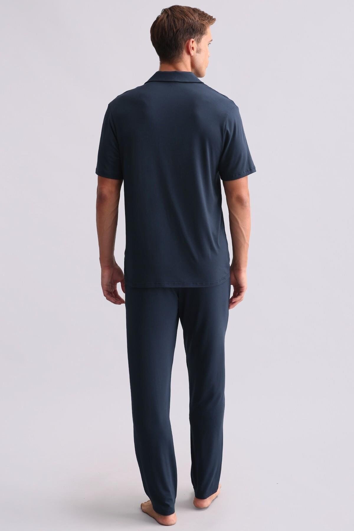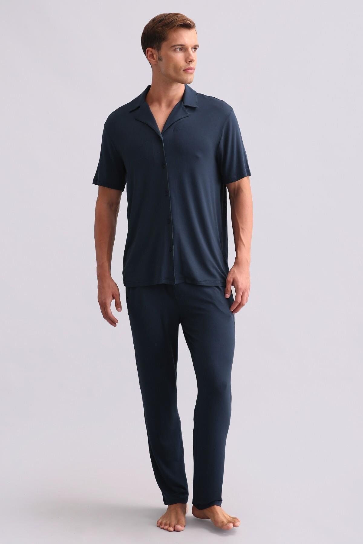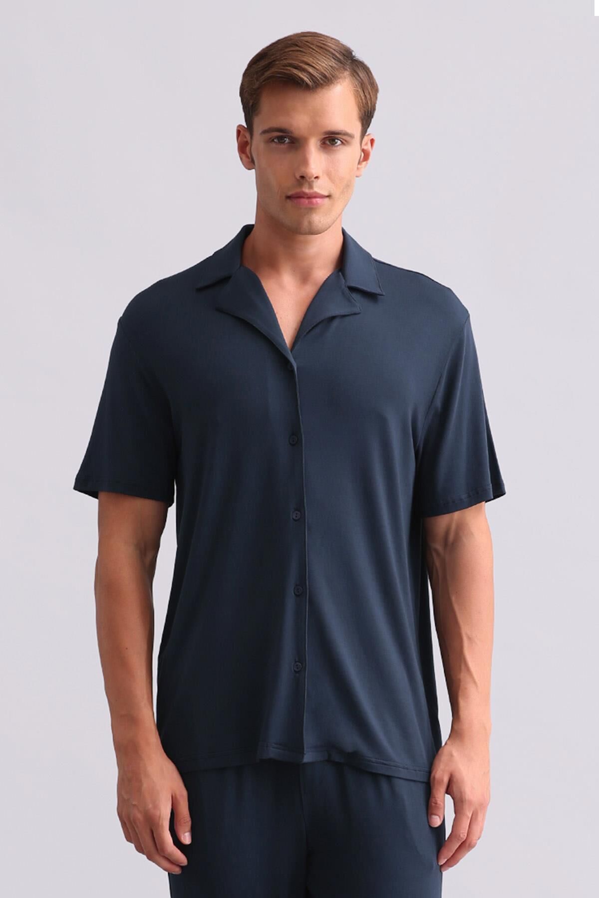 Mısırlı Erkek Modal Kısa Kollu Gömlek Gece Mavisi