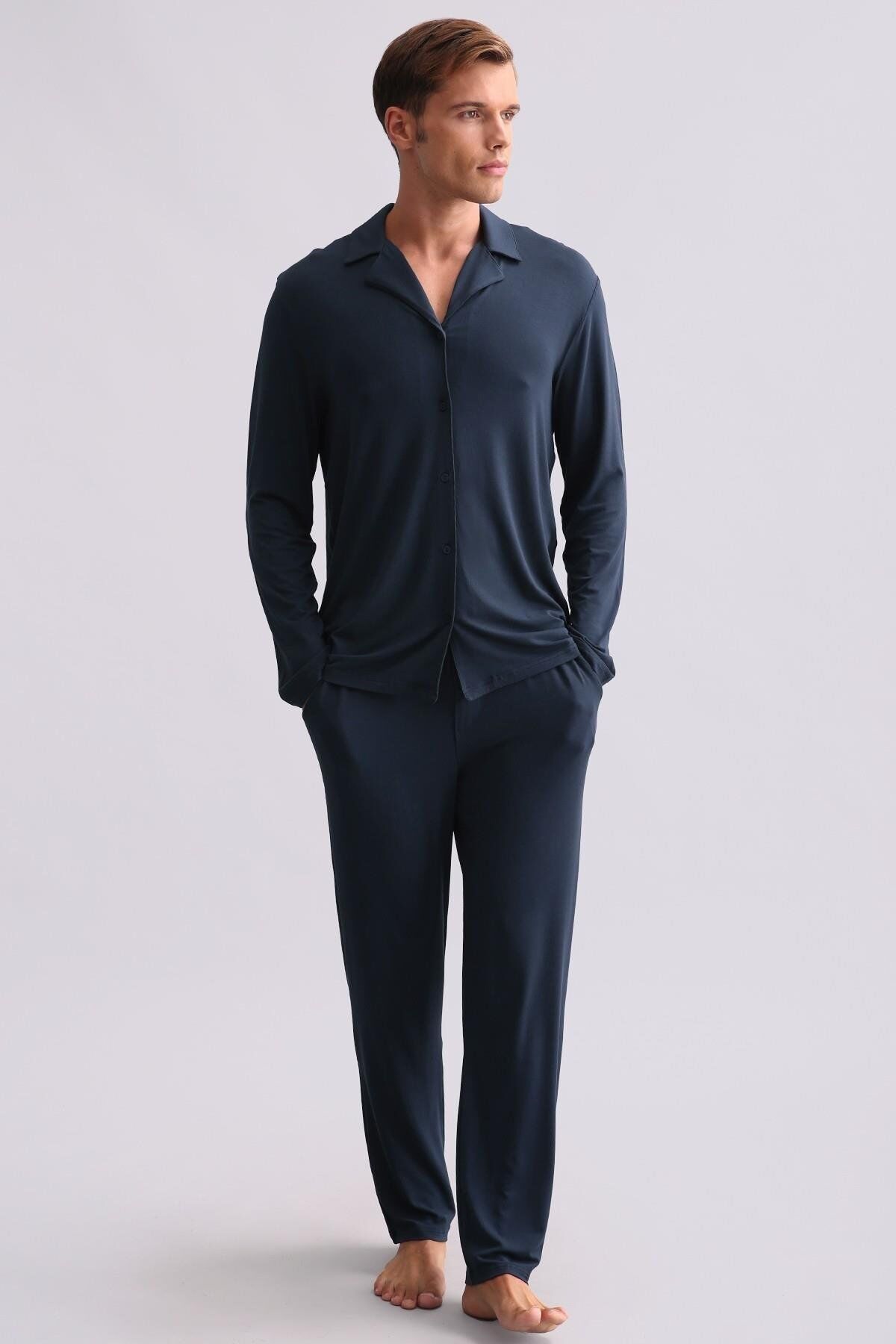 Mısırlı Erkek Modal Uzun Kollu Gömlek Gece Mavisi