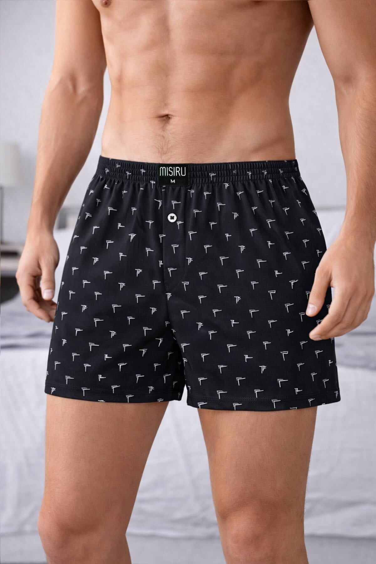 Mısırlı Erkek Pamuklu Artemis Desenli Boxer Siyah