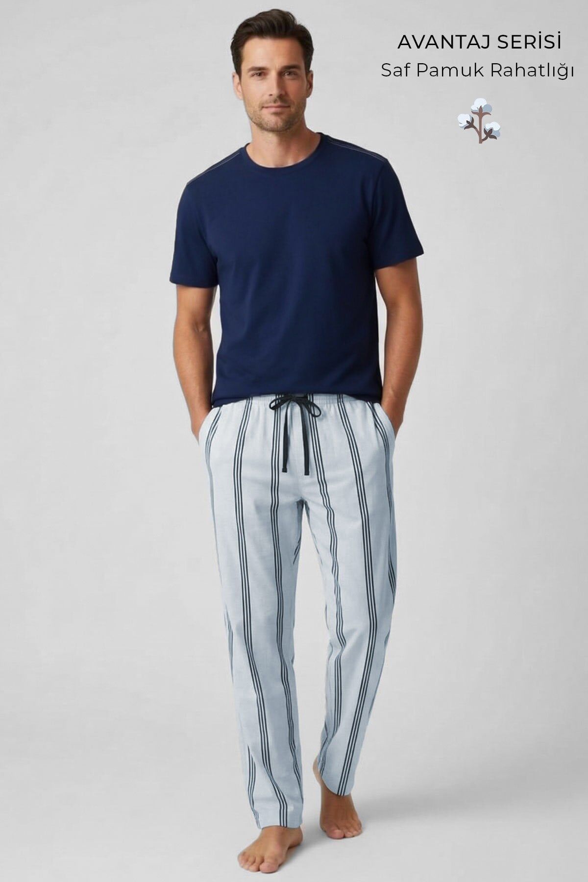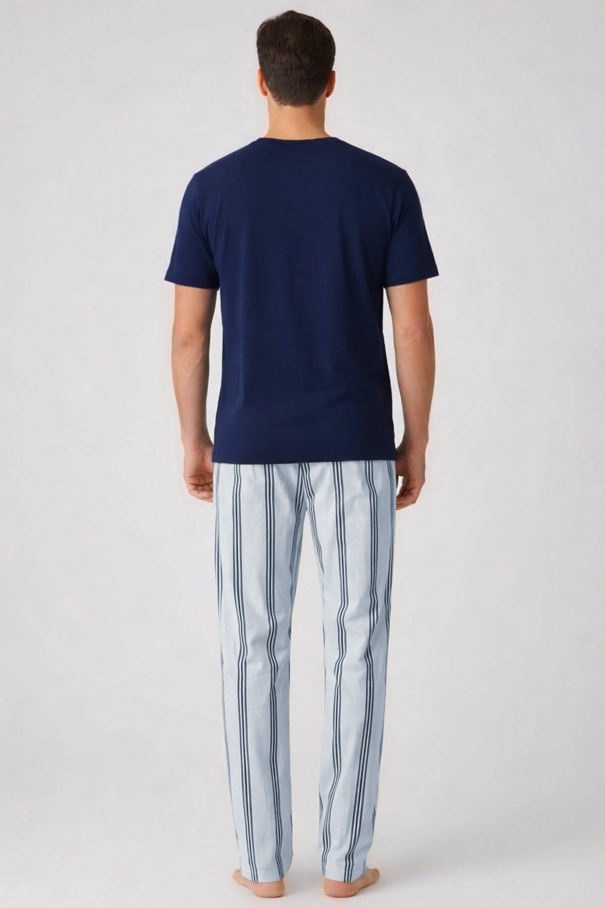 Lastikli bel yapısı ile hareket özgürlüğünü destekleyen bu pamuk erkek pijama takımı, hafif ve esnek yapısıyla özellikle yaz ayları ve mevsim geçişlerinde konfor arayanlar için ideal bir tercihtir.