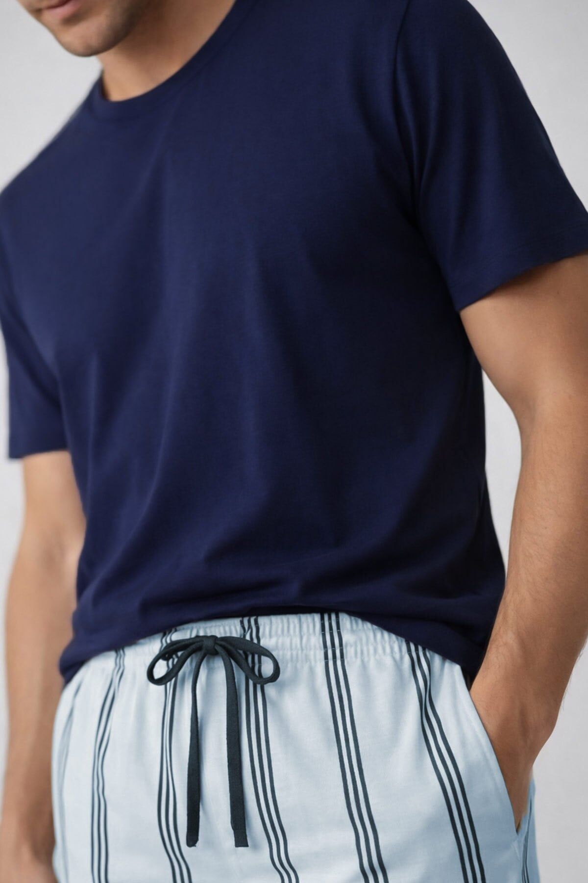 Kısa kollu t-shirt formundaki üst parça, sade ve rahat bir görünüm sunarken; çizgili desenli alt parça takıma modern ve stil sahibi bir dokunuş kazandırır. Yumuşak dokulu penye kumaşı sayesinde ciltte nazik bir his bırakır ve günlük kullanımda yüksek rahatlık sunar.