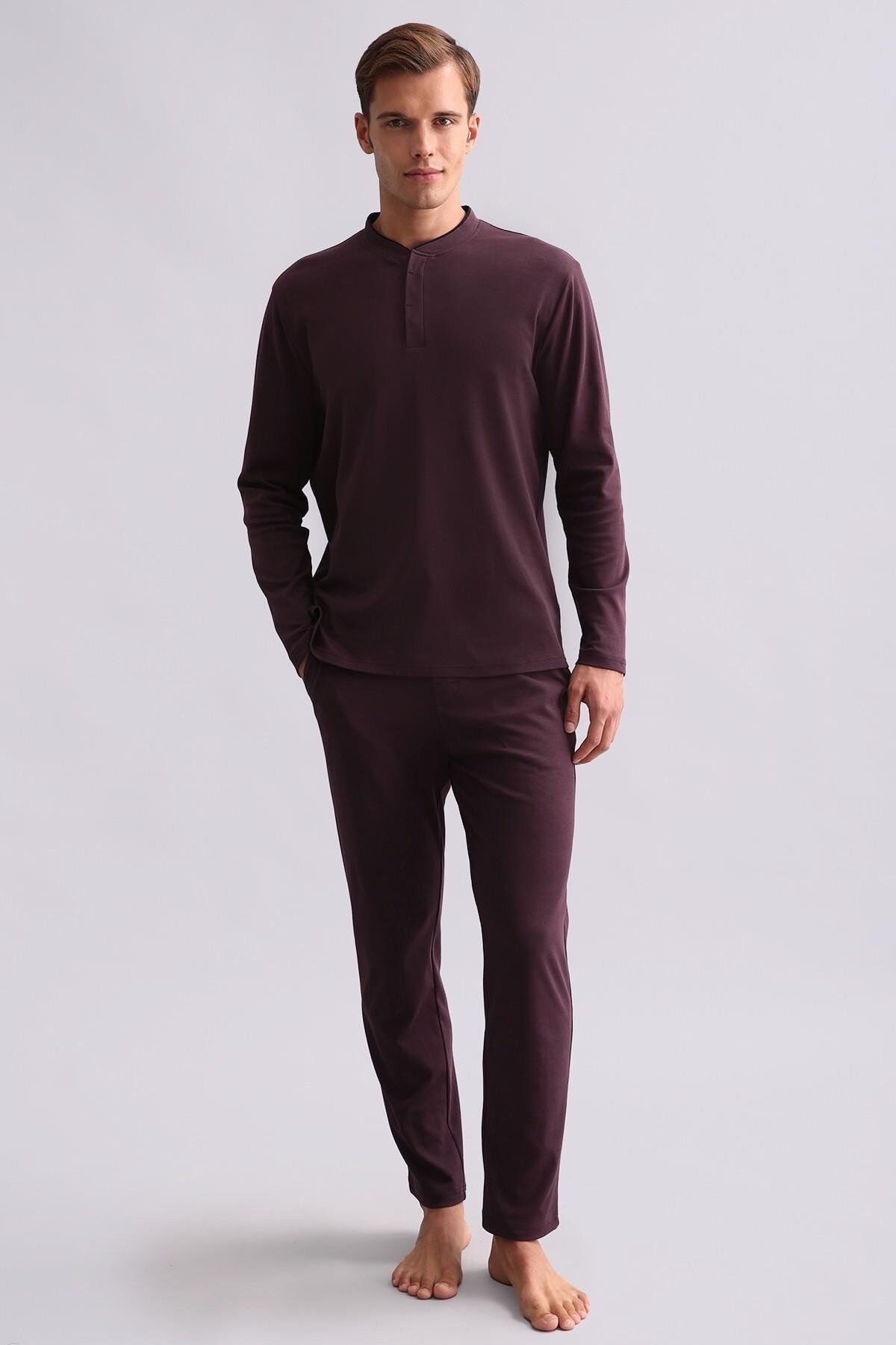Mısırlı Erkek Pamuklu Uzun Kollu m Yaka Pijama Takımı