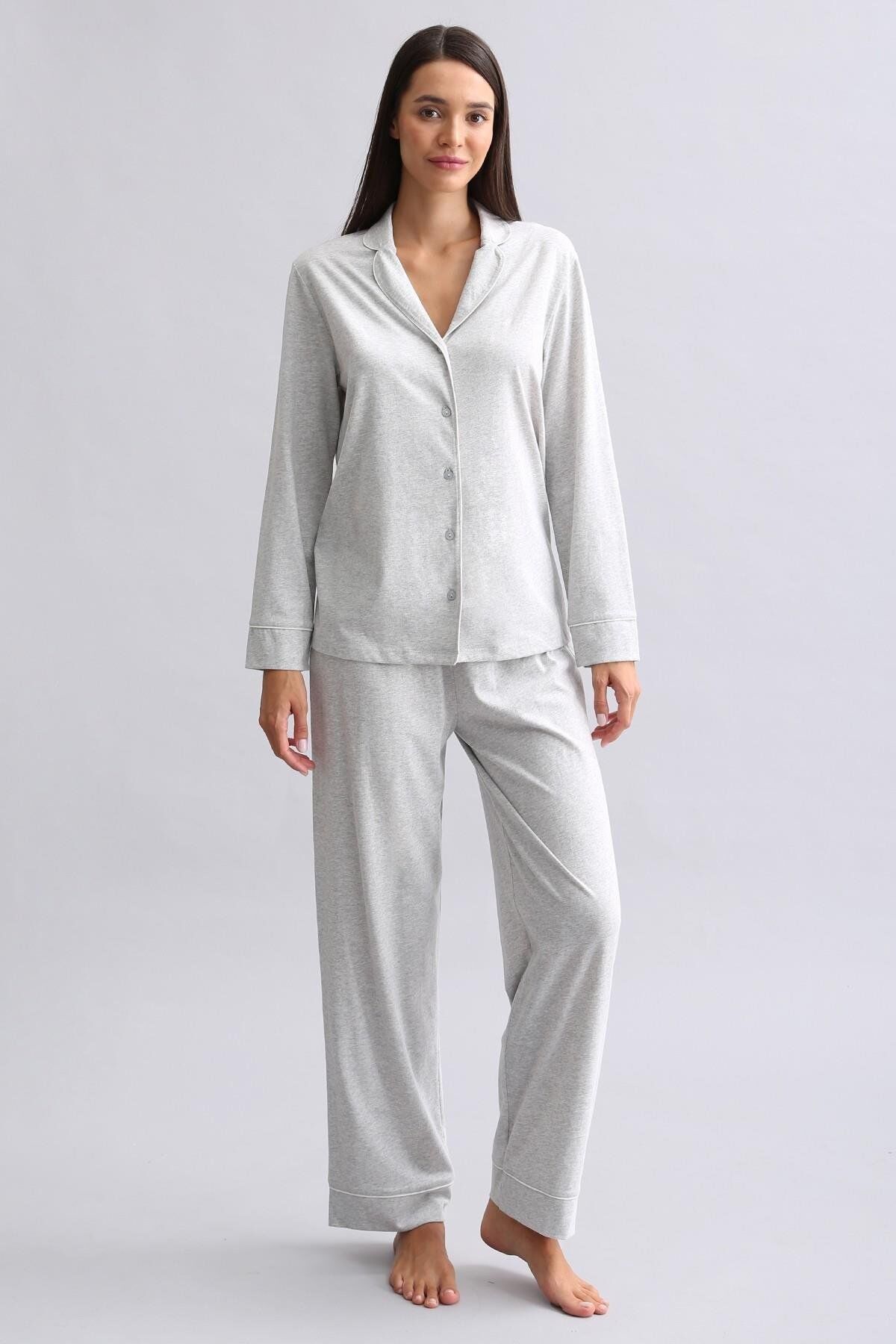 Mısırlı Kadın %100 Pamuk Pijama Takımı Gri Melanj