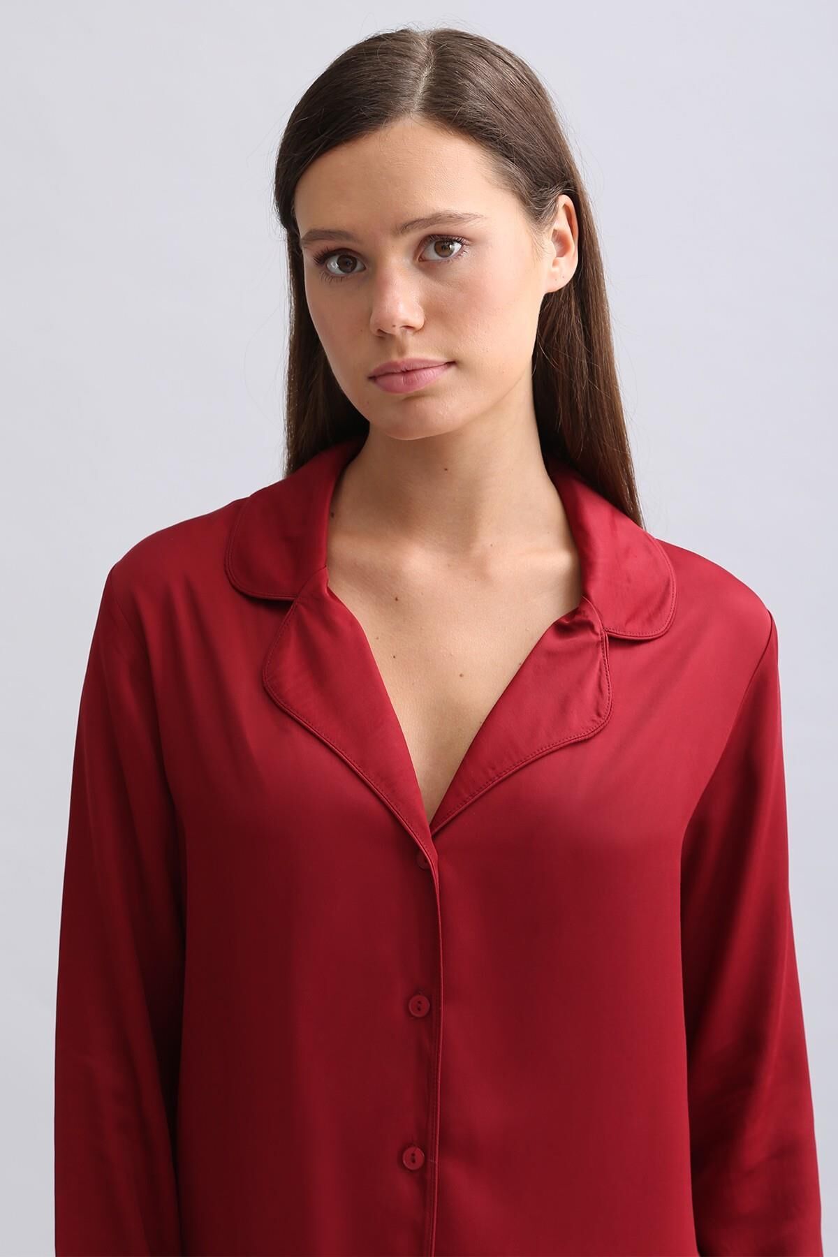 %100 bambu(viskon) kumaş ile üretilmiştir; hafif, nefes alan ve cilde yumuşak dokunuş sağlayan yapısı sayesinde gün boyu konfor sunar.