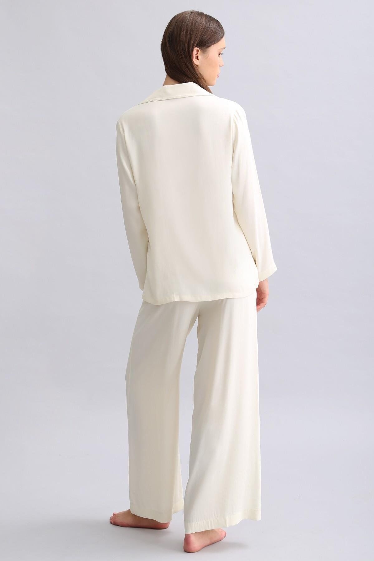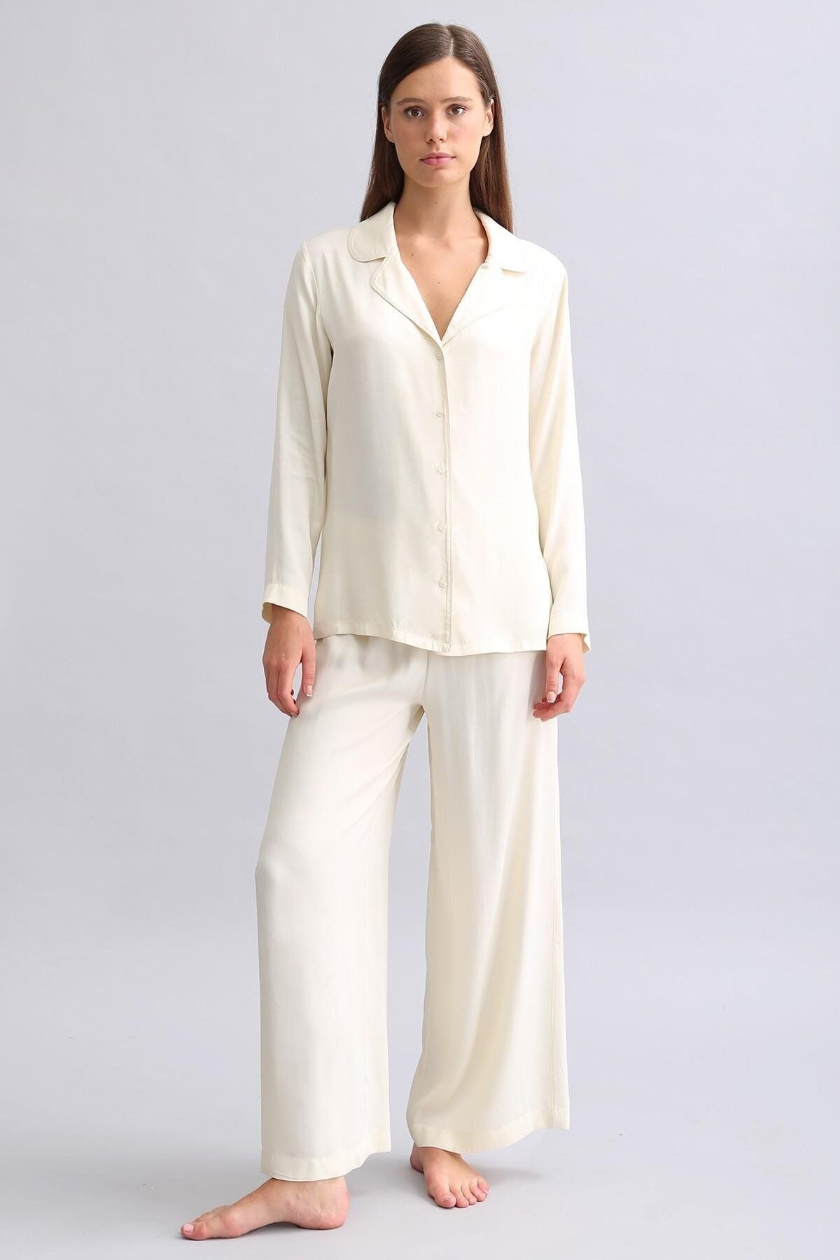 Mısırlı Kadın Bambu Pijama Takımı Ekru