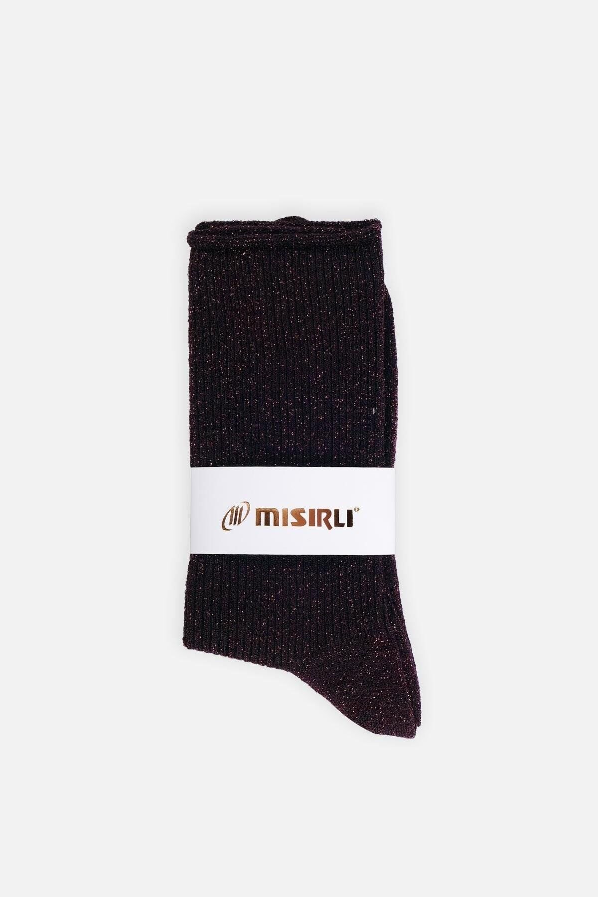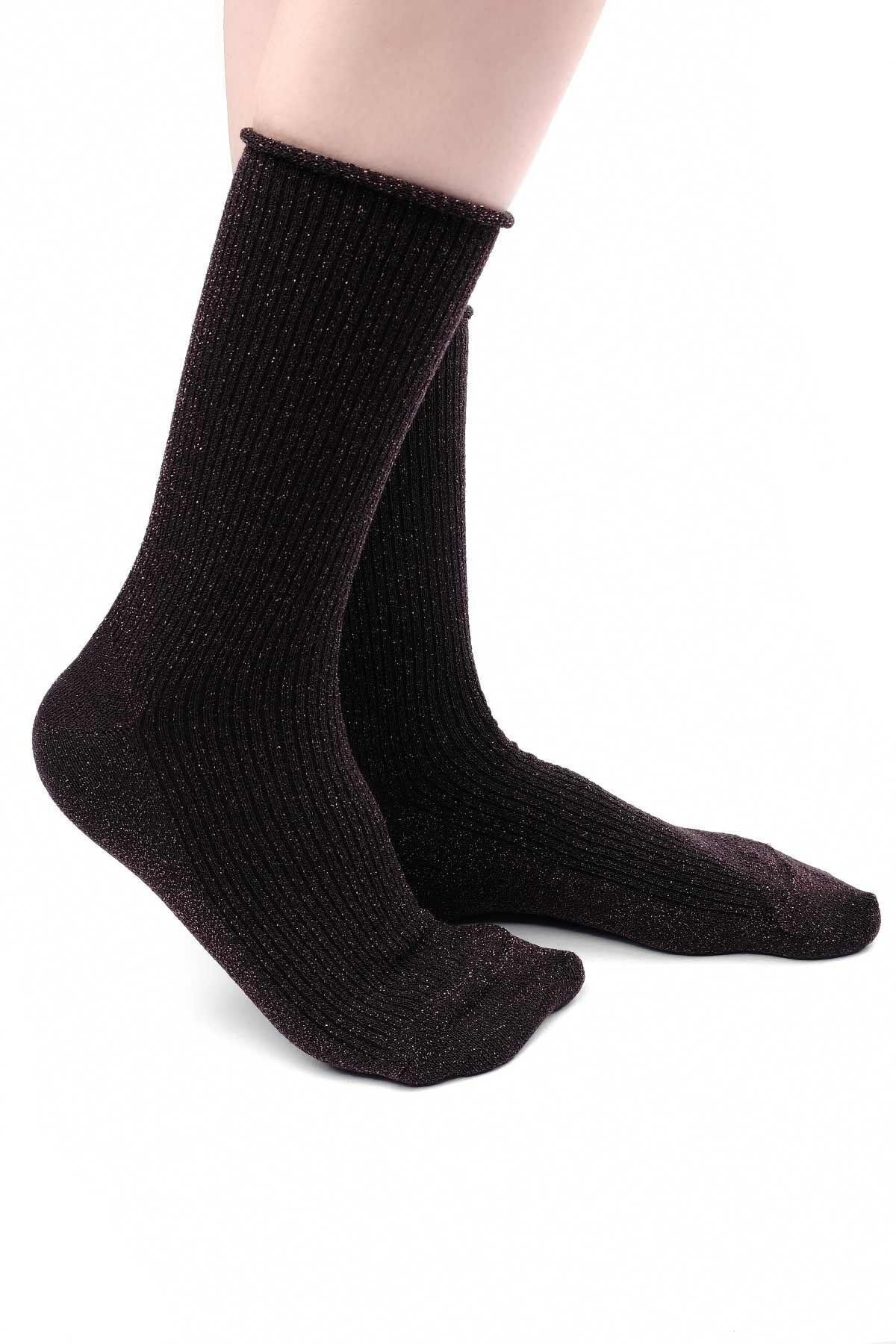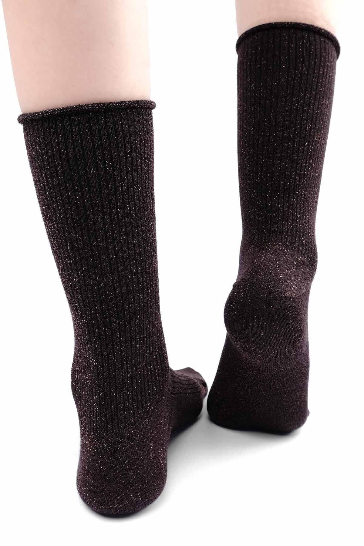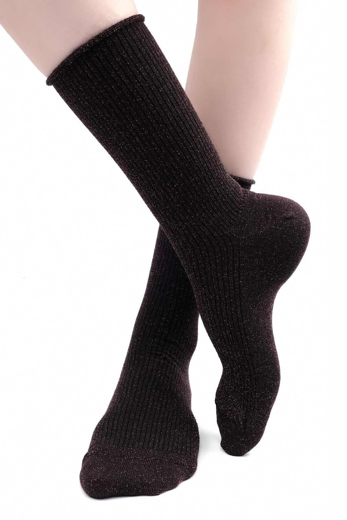 Mısırlı Kadın Bambu Simli Soket Çorap Koyu Kahverengi