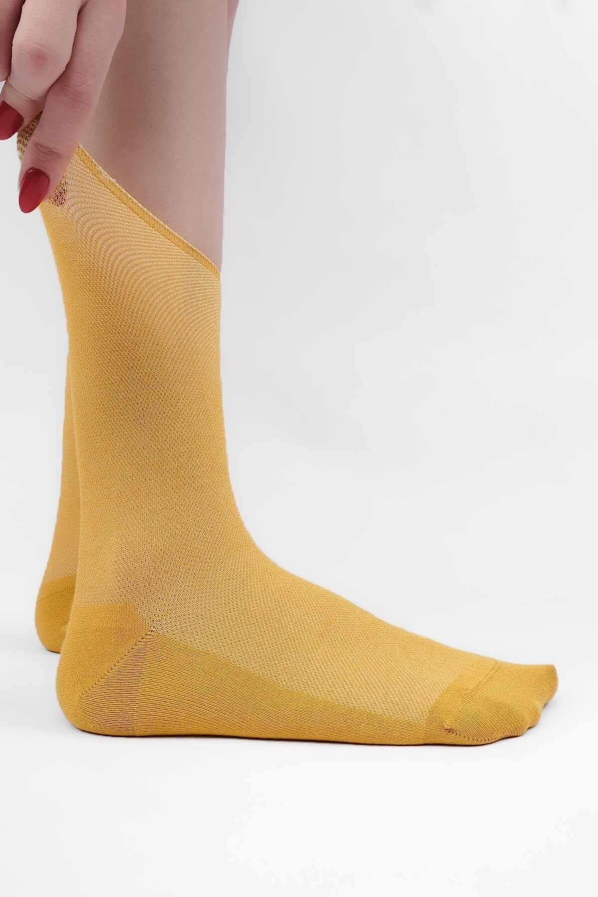 Mısırlı Kadın Bambu Tekli Diabetiker Lastiksiz Soket Çorap Sarı
