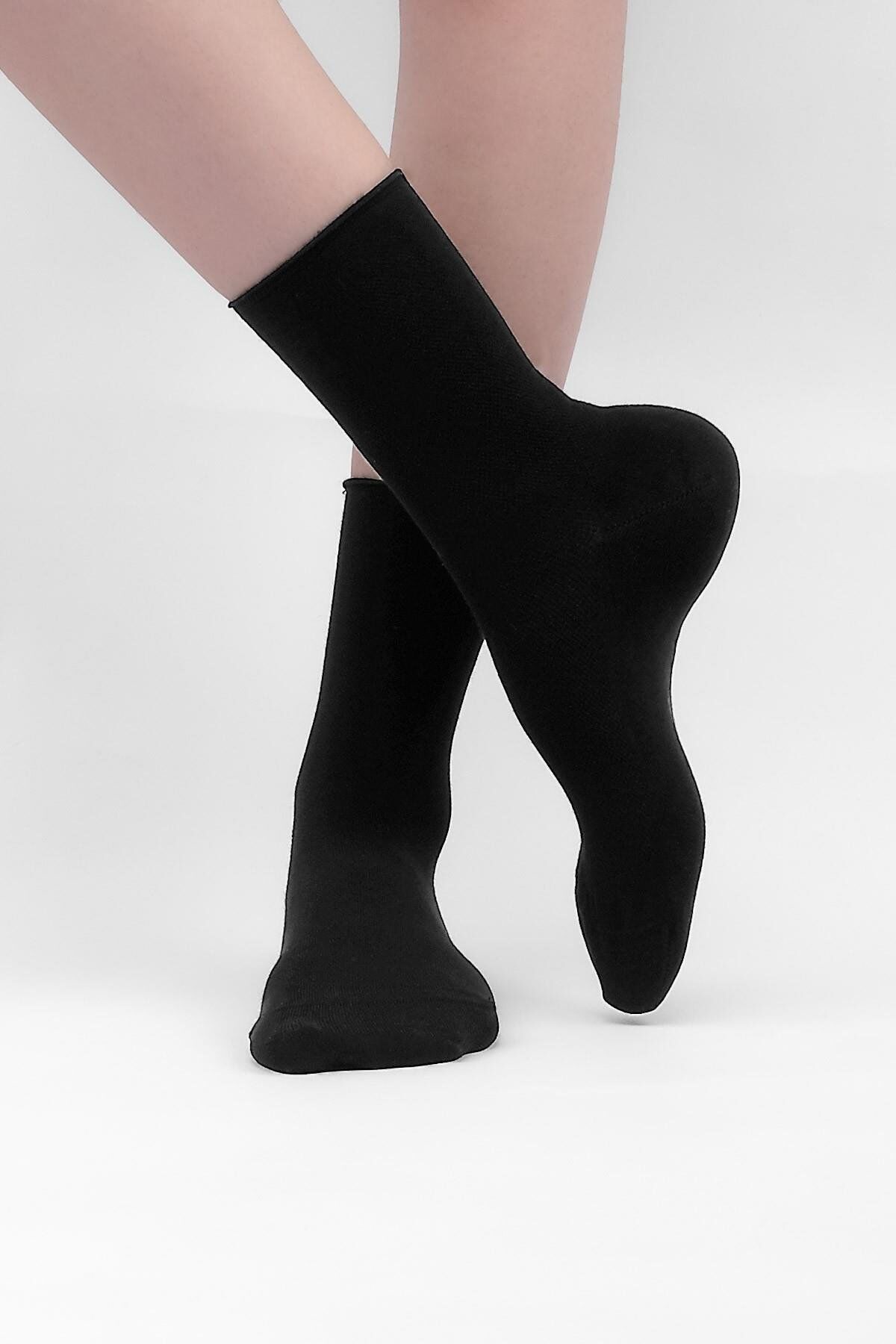 Mısırlı Kadın Bambu Tekli Diabetiker Lastiksiz Soket Çorap Siyah