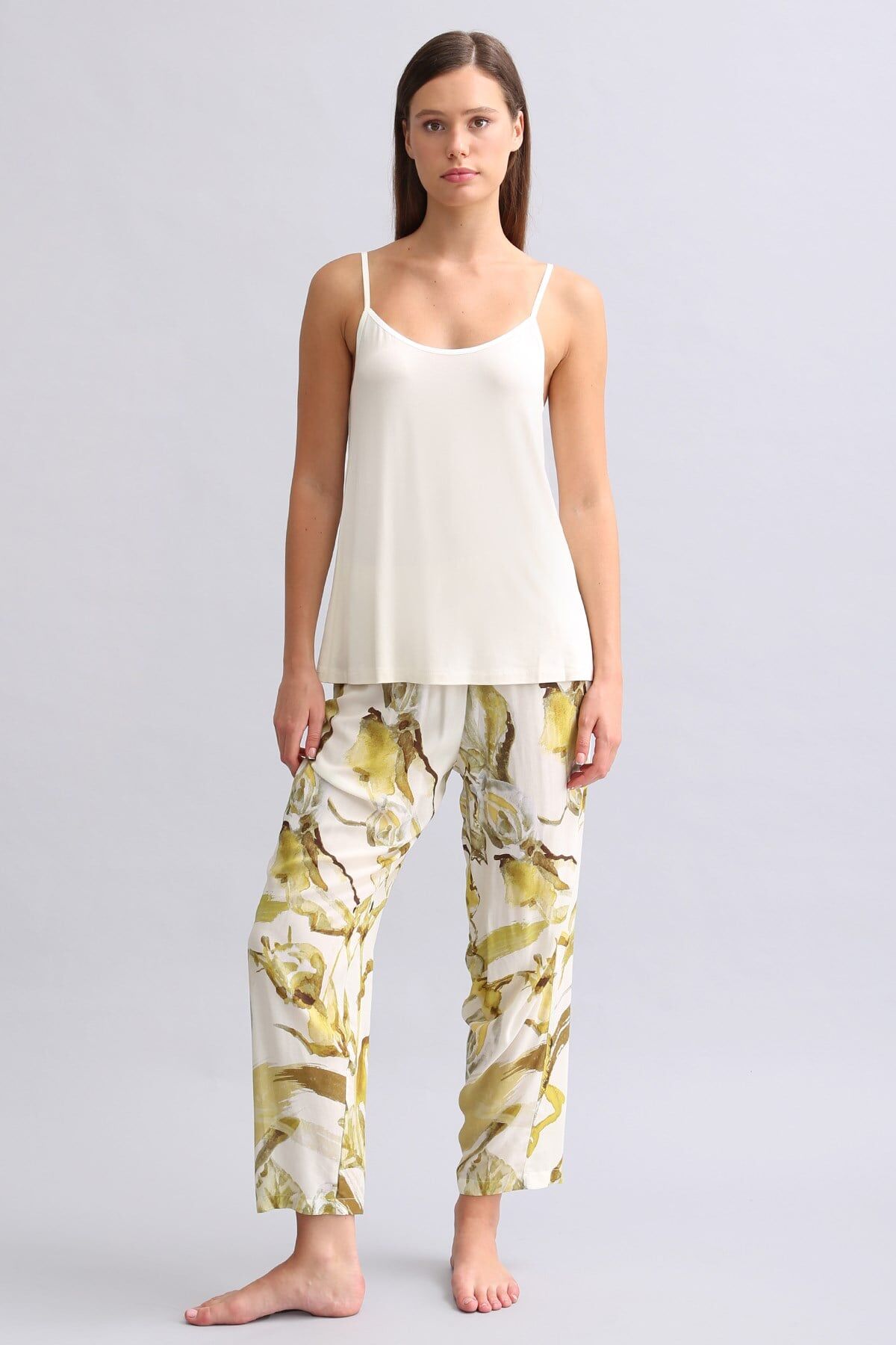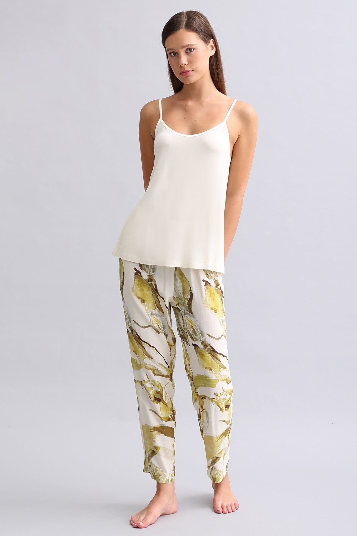 %100 viscose dokuma dar paça pijama, hafif ve yumuşak kumaş yapısı sayesinde gün boyu ve gece boyunca konfor sağlar. Modern dar paça kesimi ile şıklık ve rahatlığı bir araya getirir.