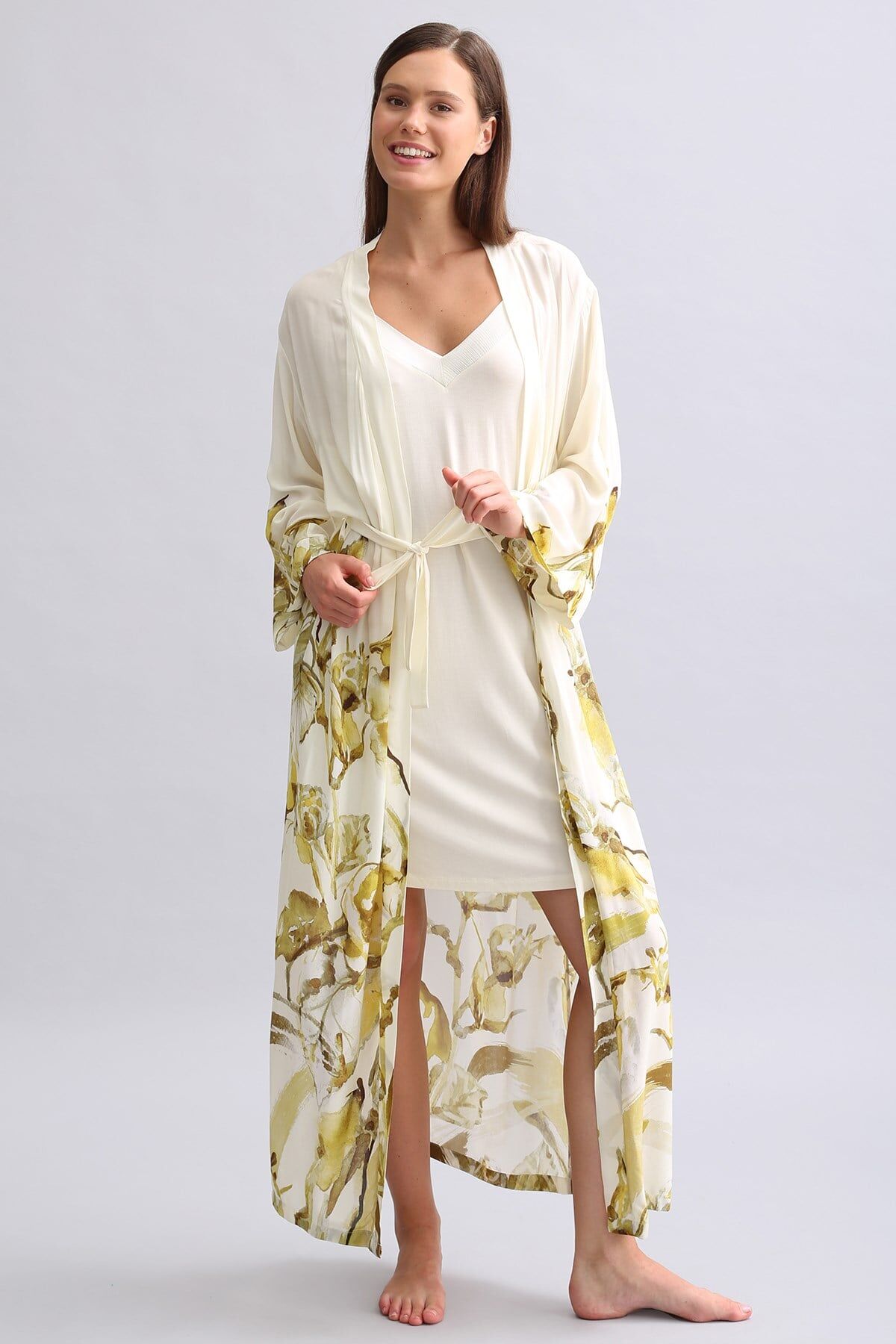 %100 viscose dokuma uzun sabahlık, yumuşak ve hafif yapısıyla gün boyu konfor sunar. İpeksi dokusu, uzun formu ve zarif görünümü ile ev giyiminde şıklık ve rahatlığı bir araya getirir.