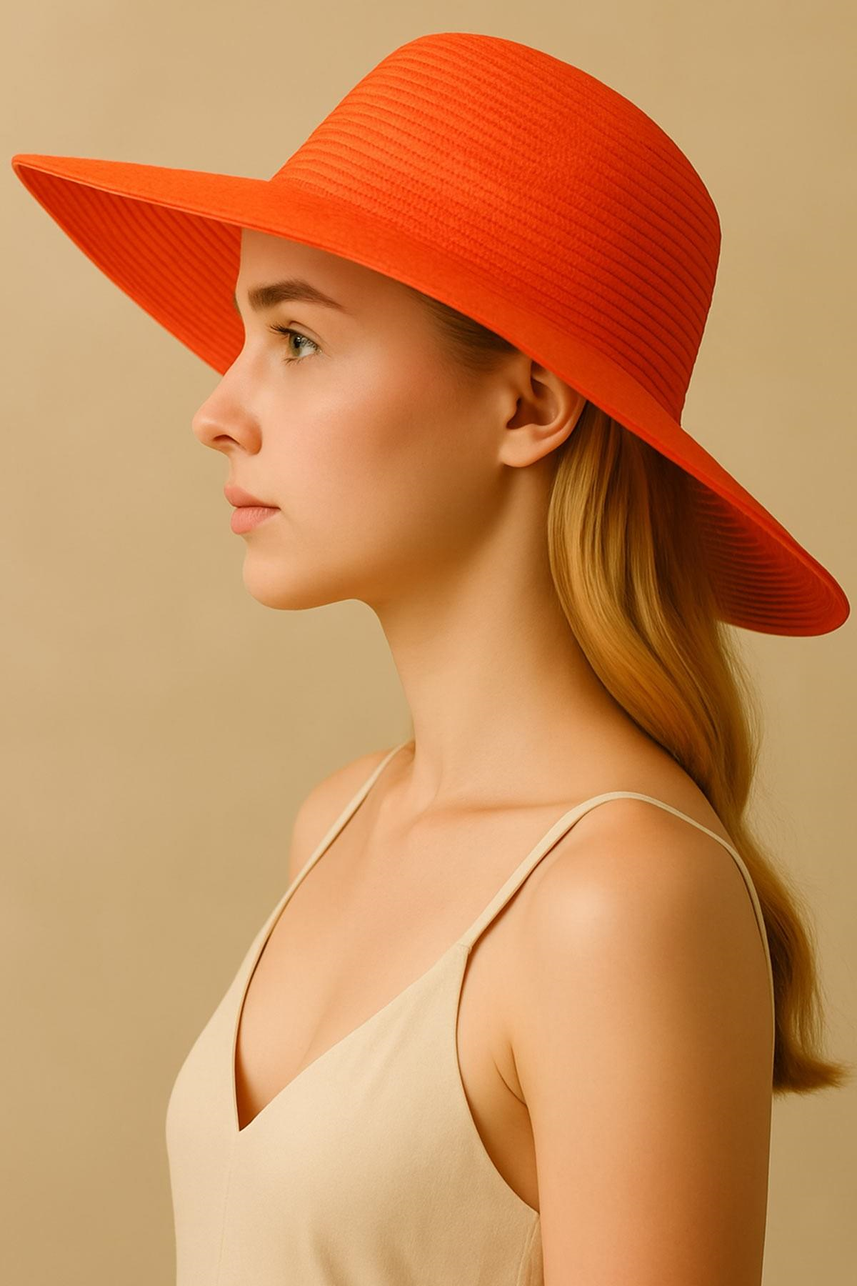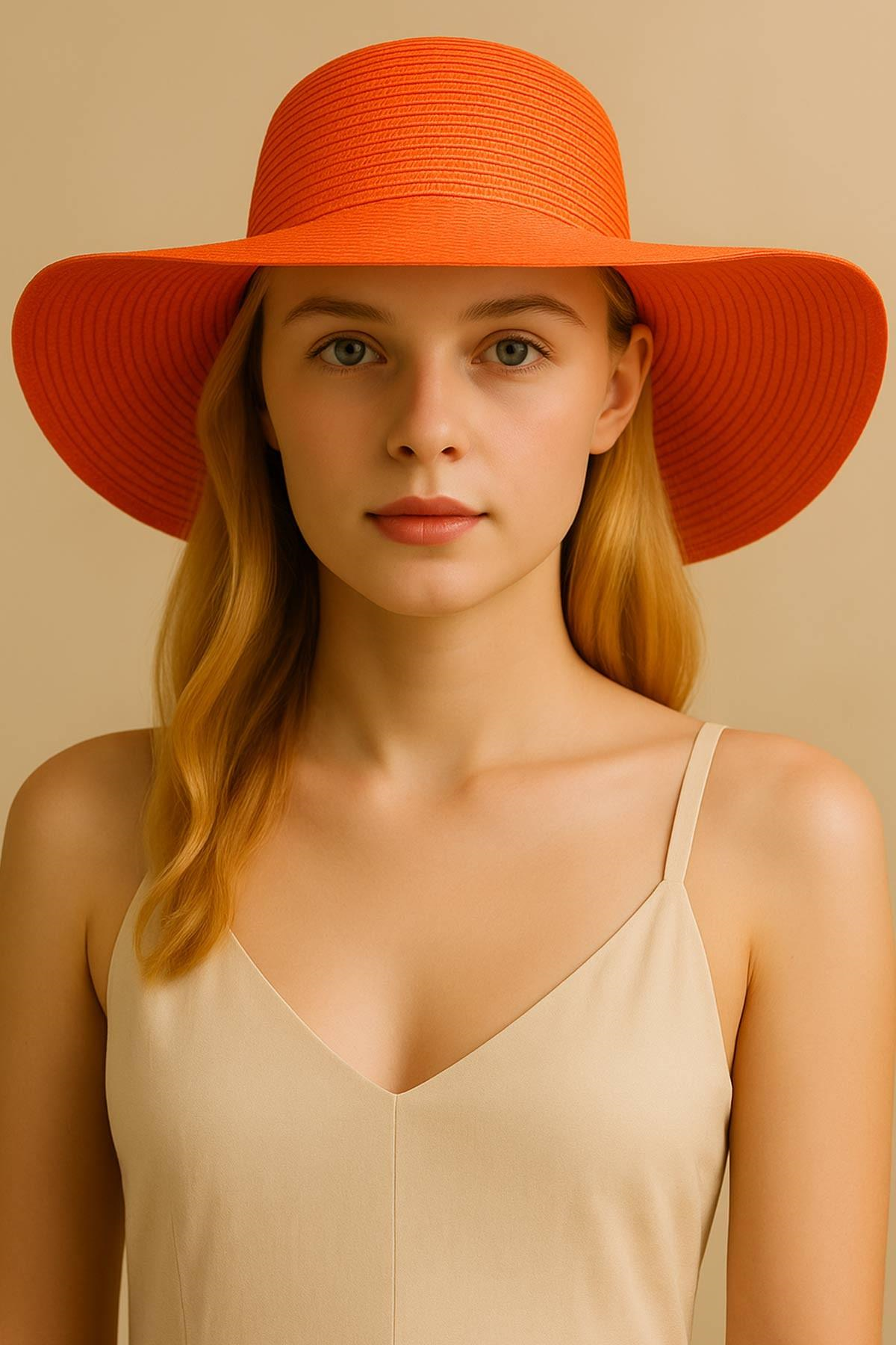Mısırlı Kadın Hasır Plaj Şapkası Turuncu