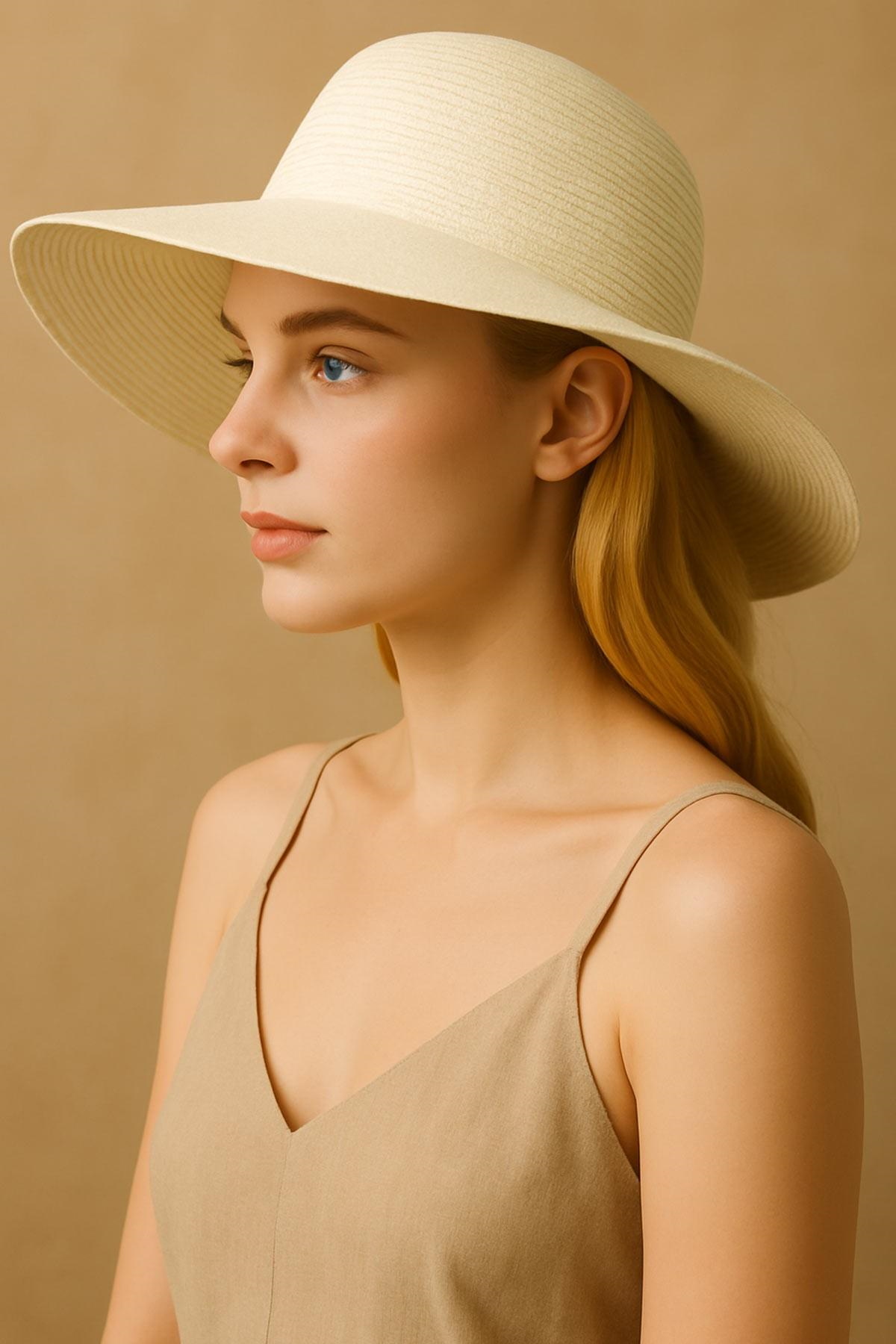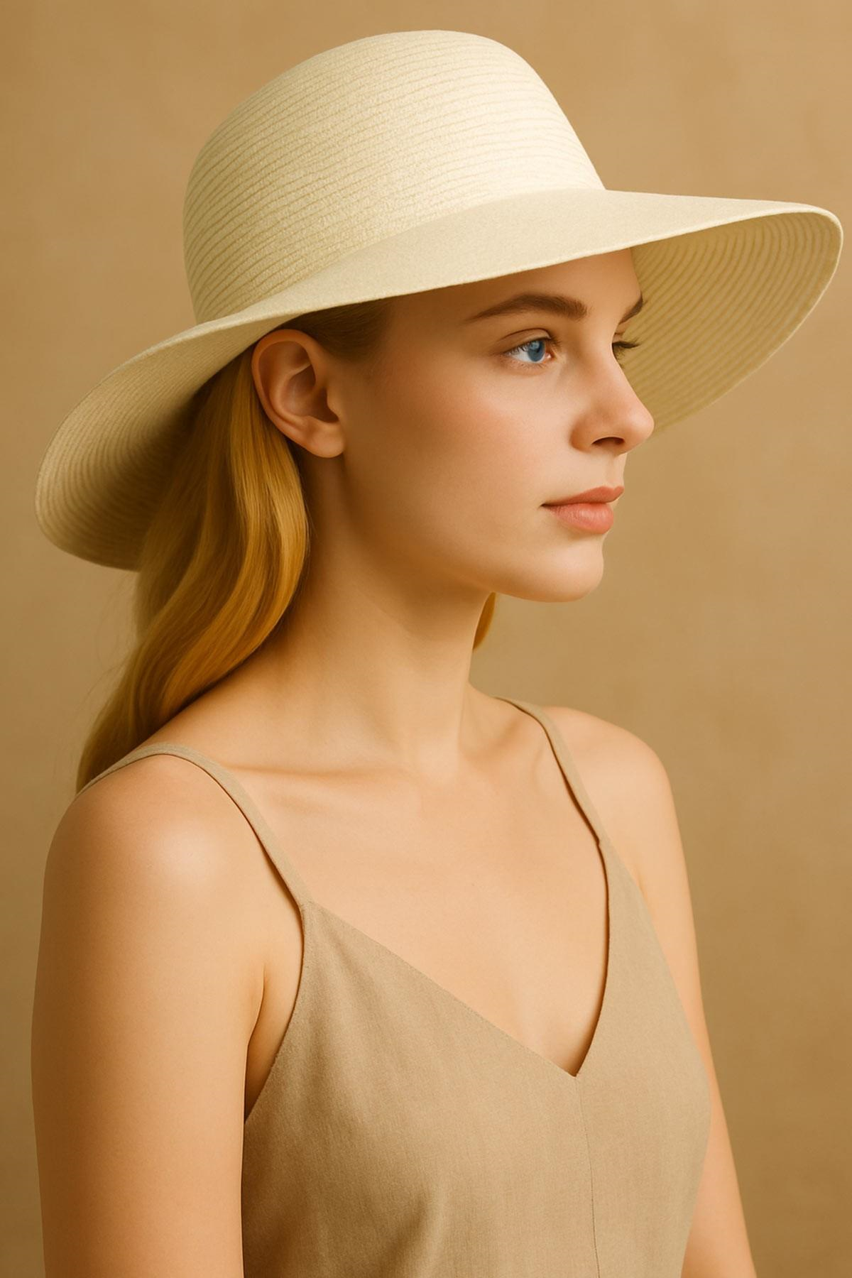 Mısırlı Kadın Hasır Plaj Şapkası Vanilya