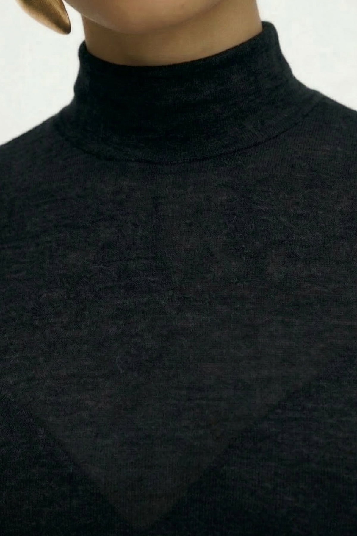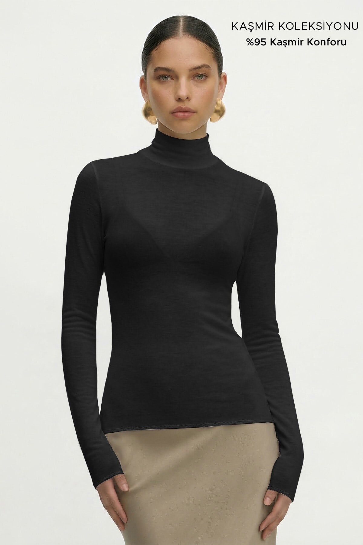 Mısırlı Kadın Kaşmir Ultra Yumuşak Dik Yaka Kazak Siyah