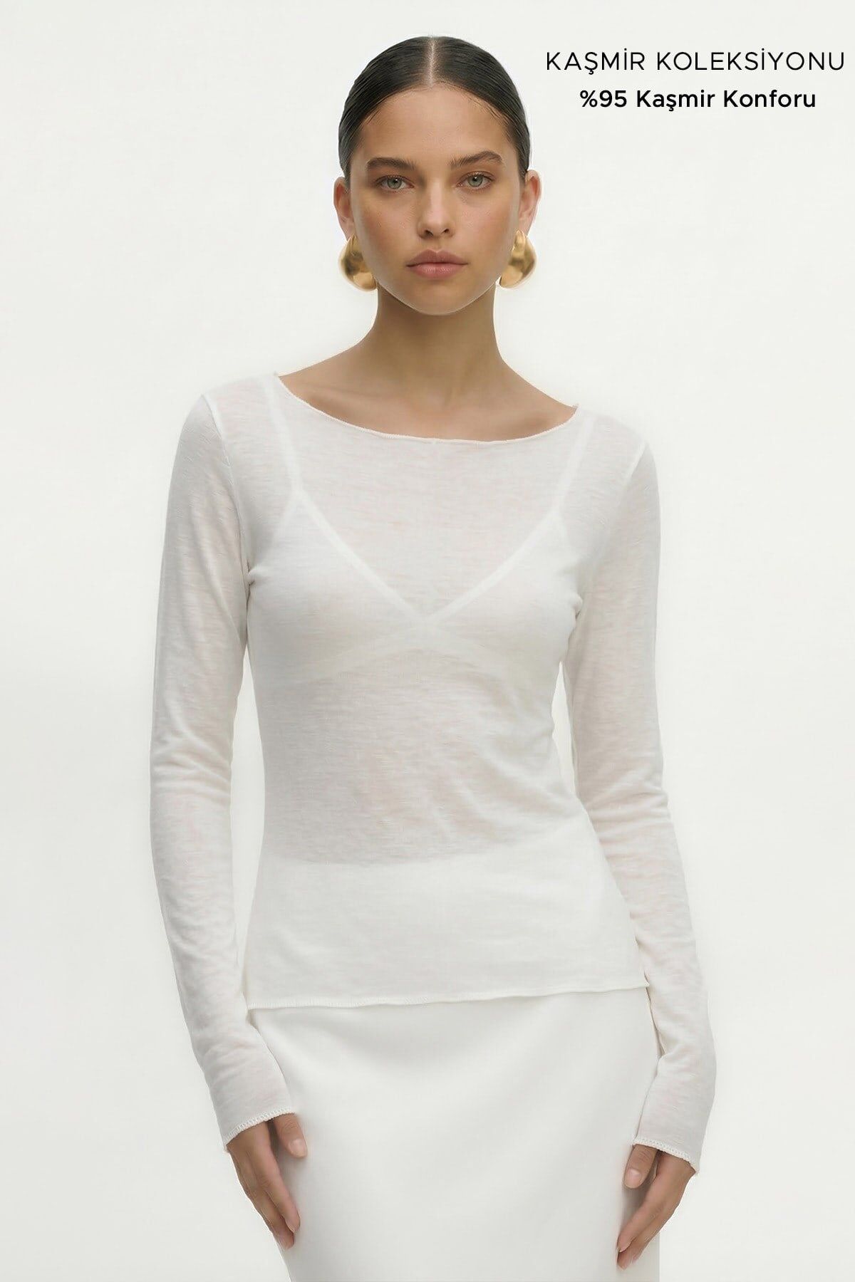 Kayık yaka tasarımı, omuz hattını zarif biçimde öne çıkarırken modern ve şık bir görünüm sunar. Kaşmir kumaşın doğal yapısı sayesinde ürün hafif, nefes alabilir ve sıcak tutan özelliklere sahiptir.