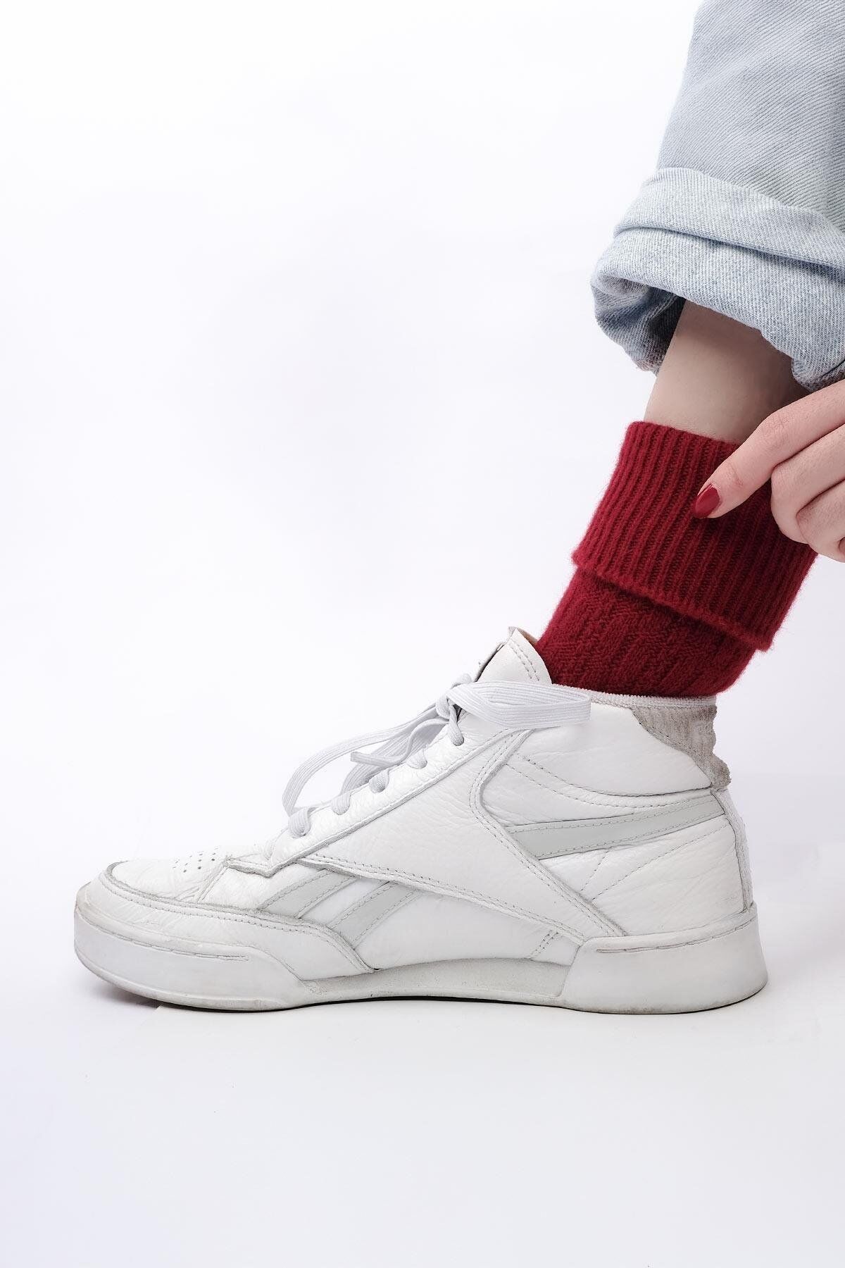 Mısırlı Kadın n Yünü (Lambswool) Tekli Kışlık Kıvrık Soket Çorap