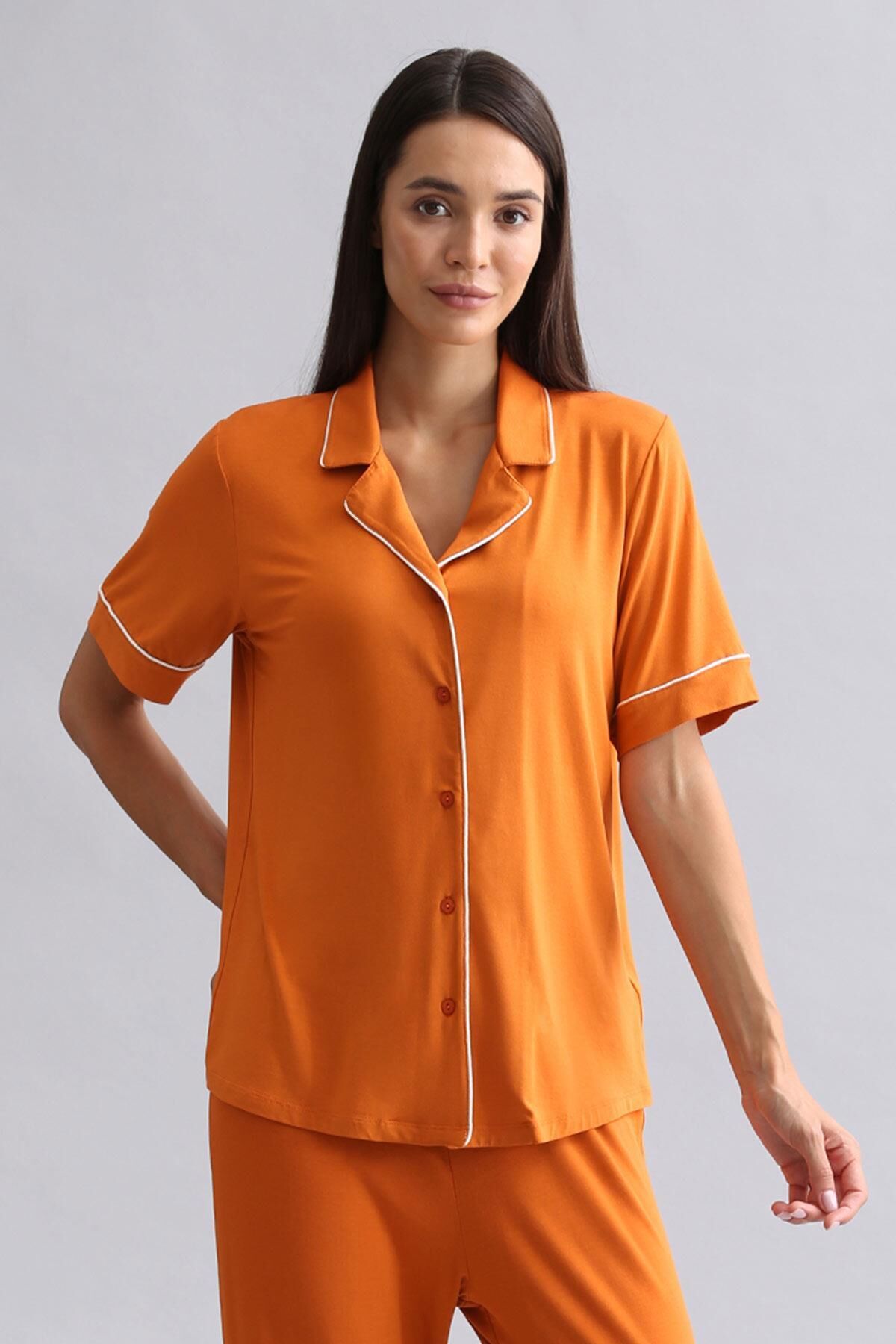 Mısırlı Kadın Modal Kısa Kollu Gömlek Pas Kırmızı