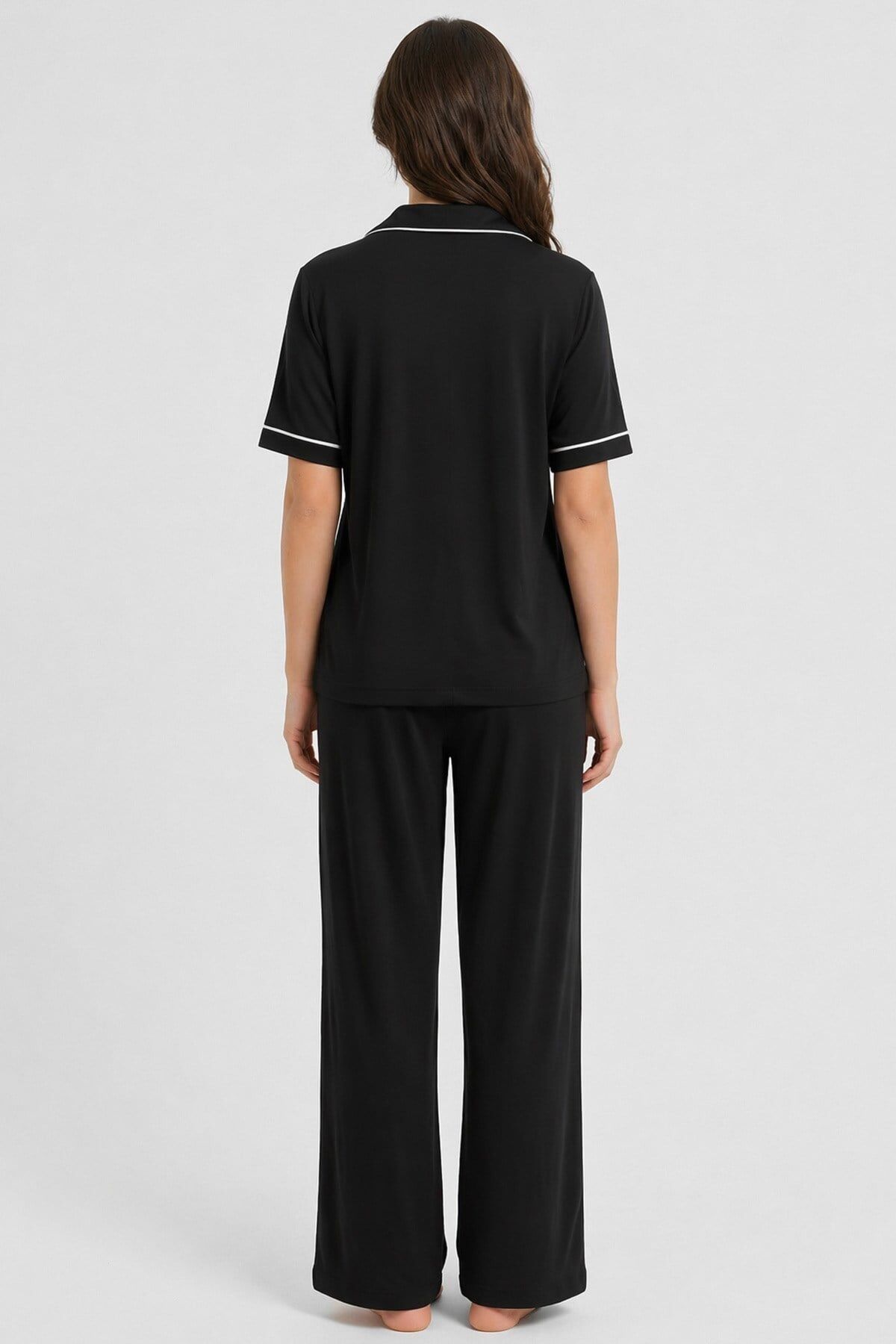 Viskon Karışımlı Kısa Kollu Gömlek Yaka Kadın Pijama Takımı