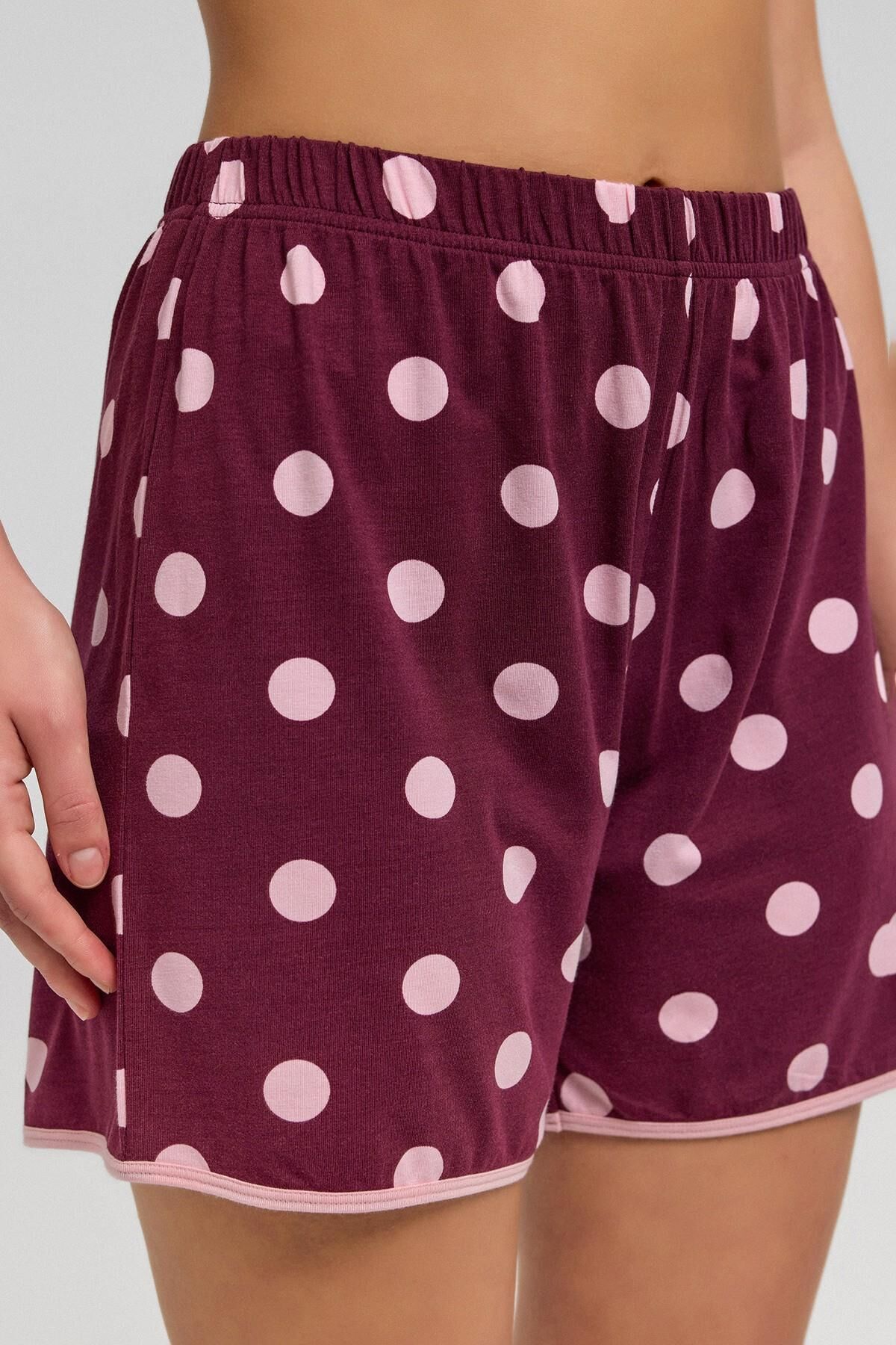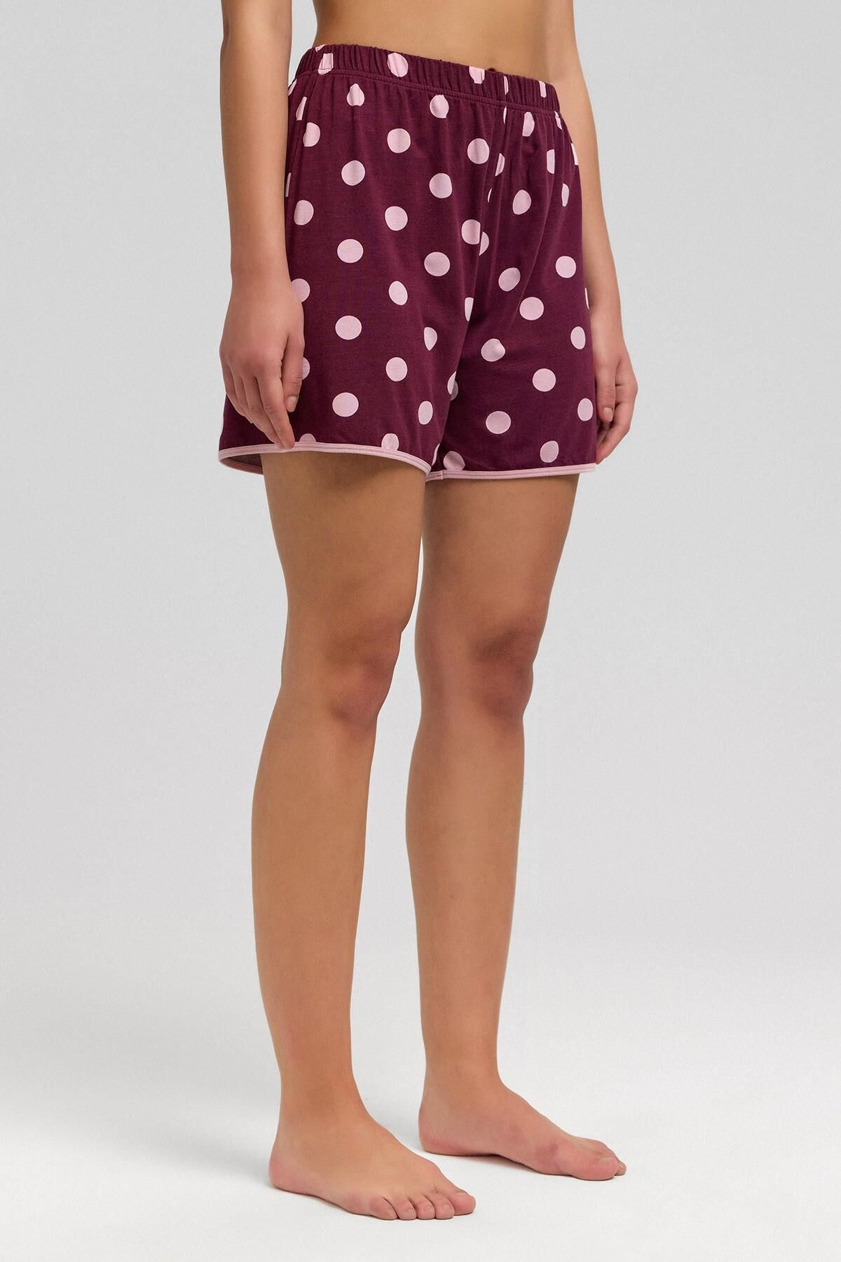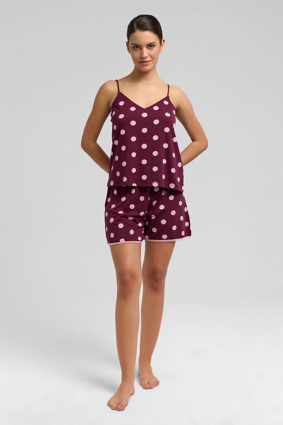 Mısırlı Kadın Modal Puantiyeli İp Askılı Şort Takımı Bordo