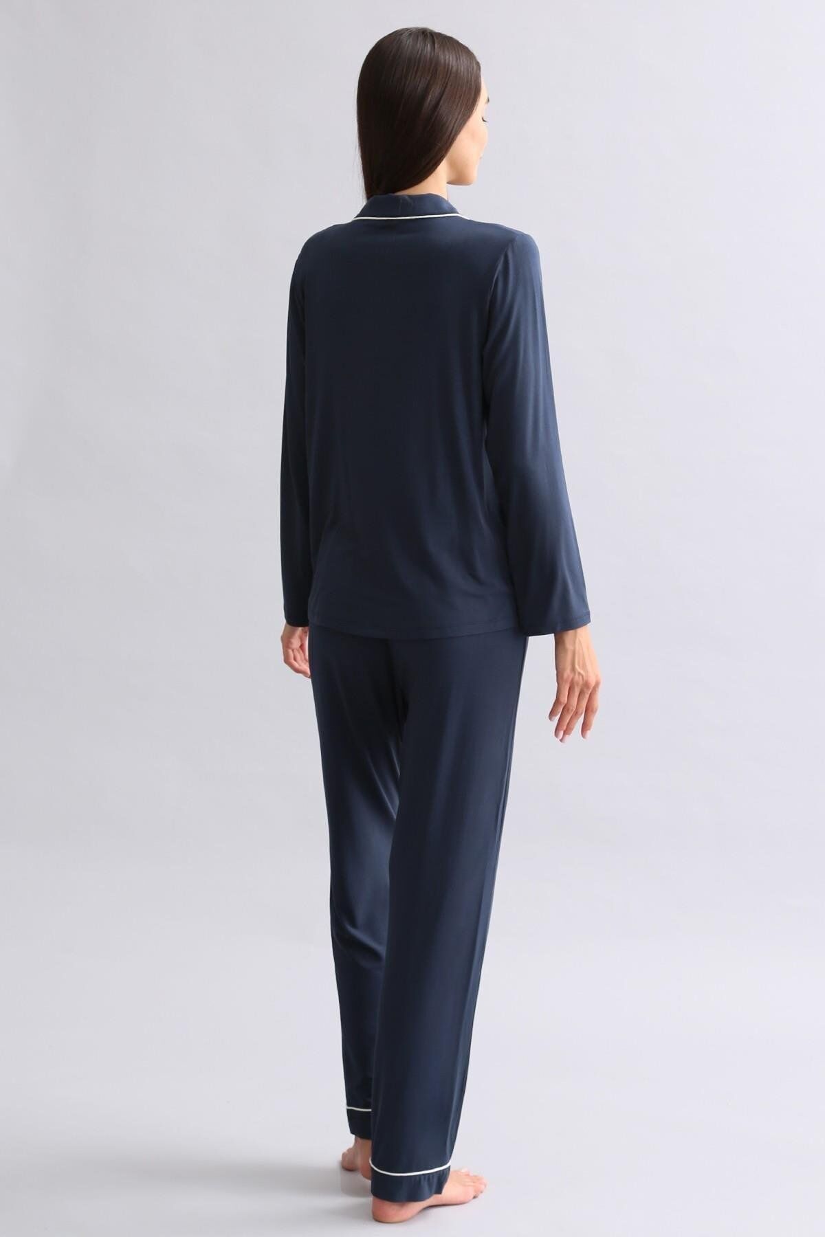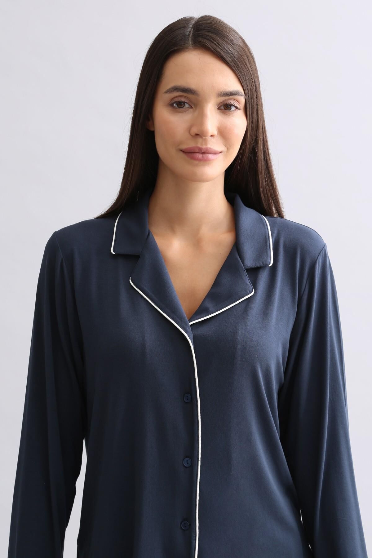 Mısırlı Kadın Modal Uzun Kollu Gömlek Gece Mavisi