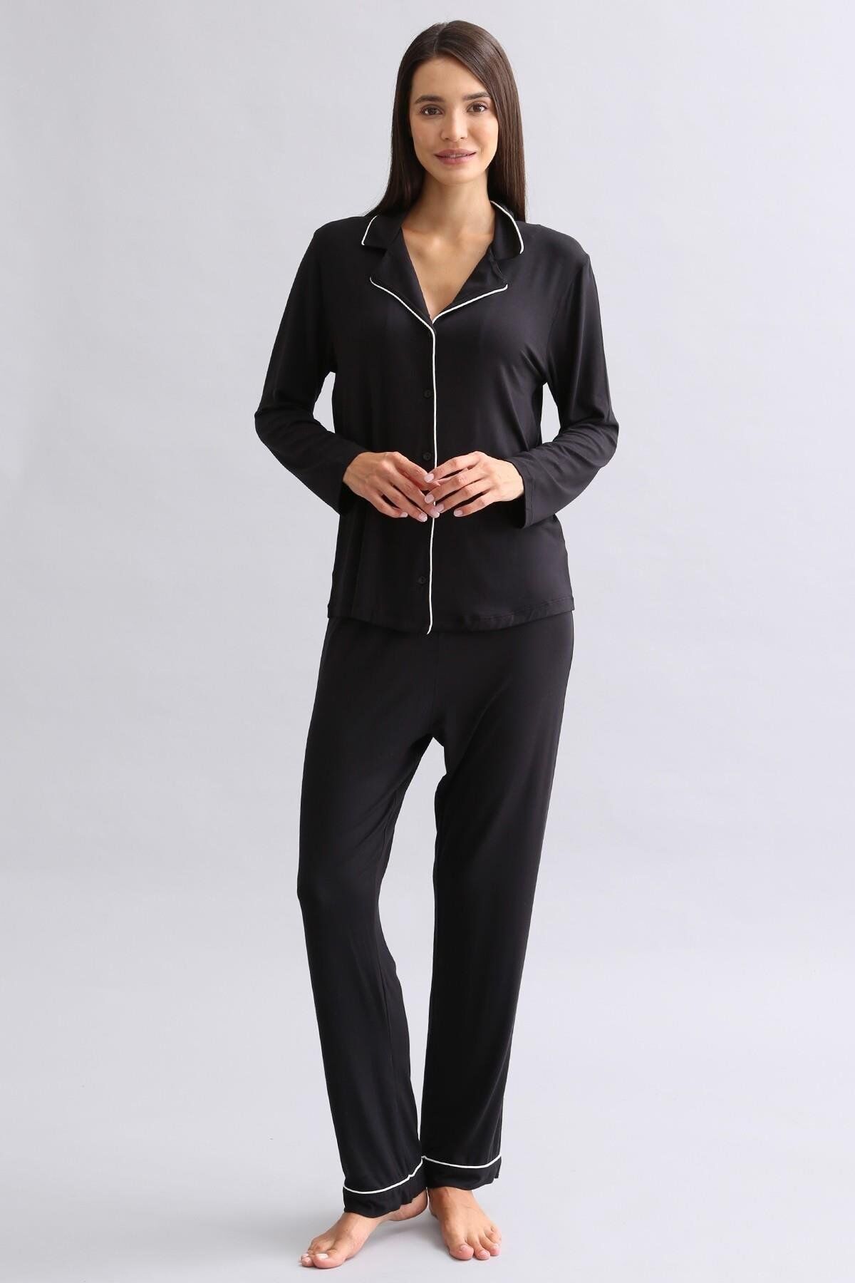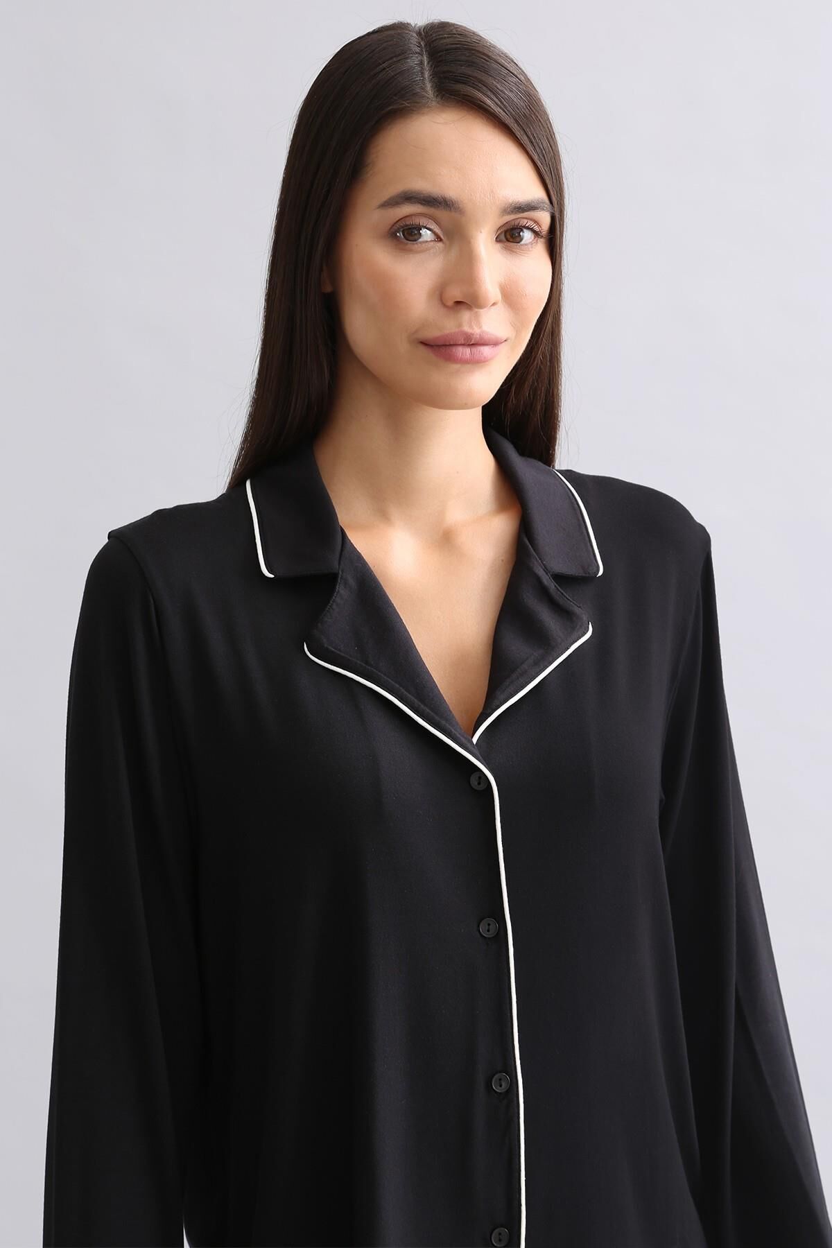 modal uzun kollu gömlek, klasik ve şık tasarımıyla günlük ve ev giyiminde rahat bir kullanım sunar.