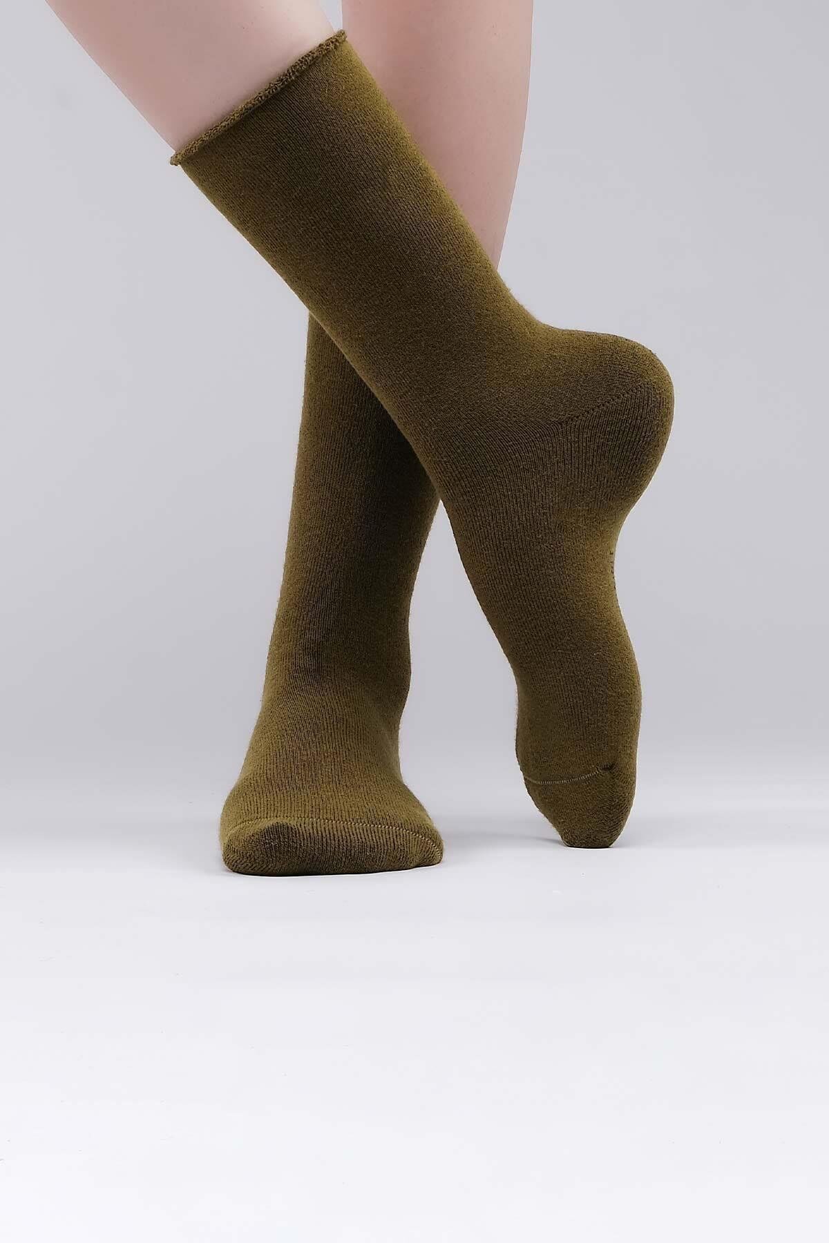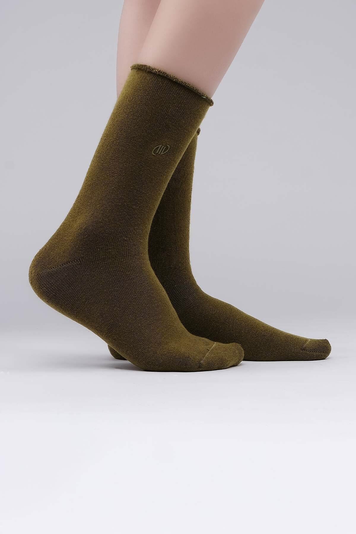 Mısırlı Kadın Organik Pamuklu Havlu Tekli Soket Çorap Haki