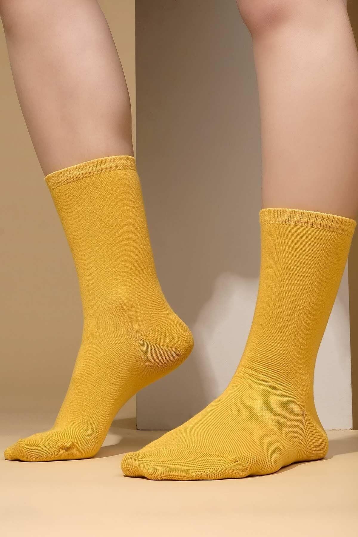 Mısırlı Kadın Organik Pamuklu Tekli Soket Çorap Sarı