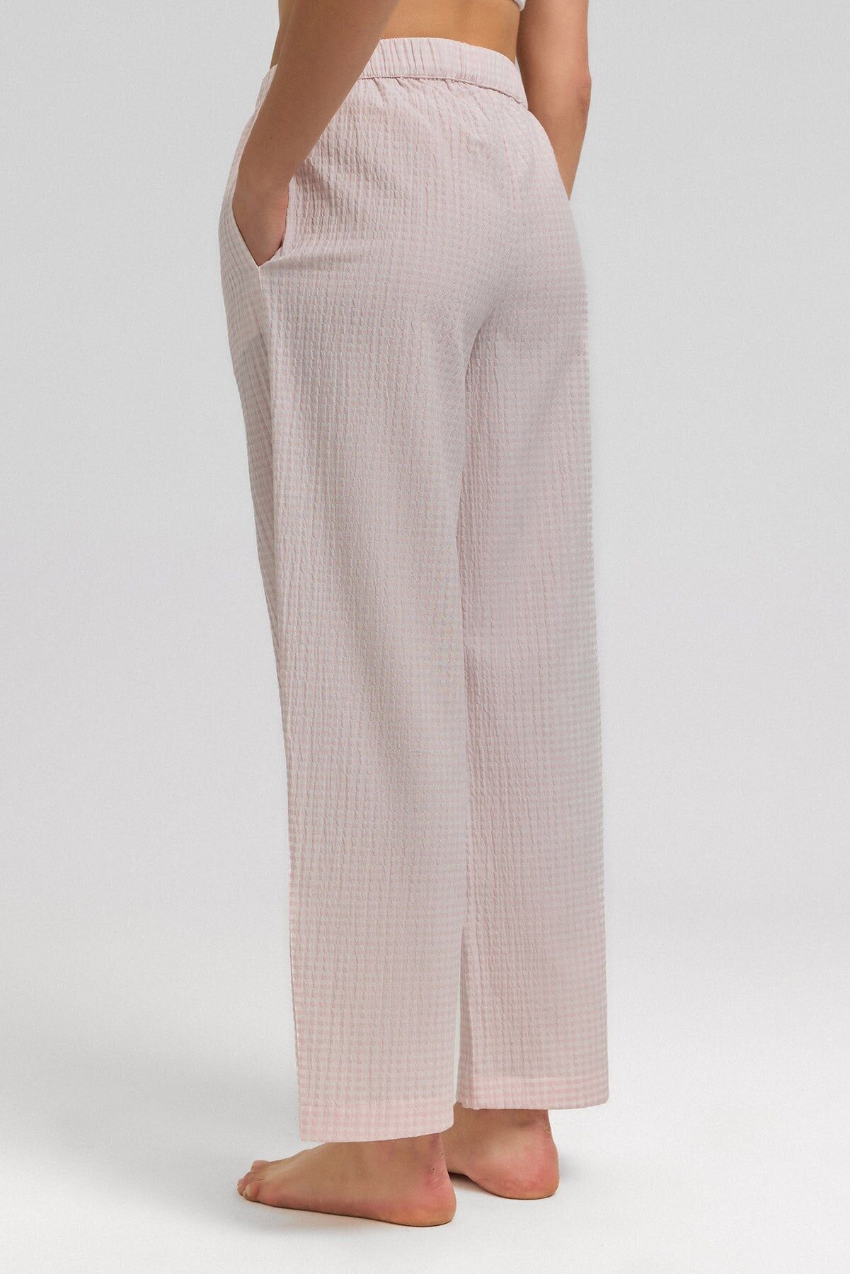 %100 cotton dokuma pijama altı, doğal pamuk liflerinden üretilen yumuşak ve hafif yapısıyla gün boyu konfor sunar. Nefes alabilen kumaşı ve rahat kesimi sayesinde ev giyimi ve uyku için ideal bir alt parçadır.