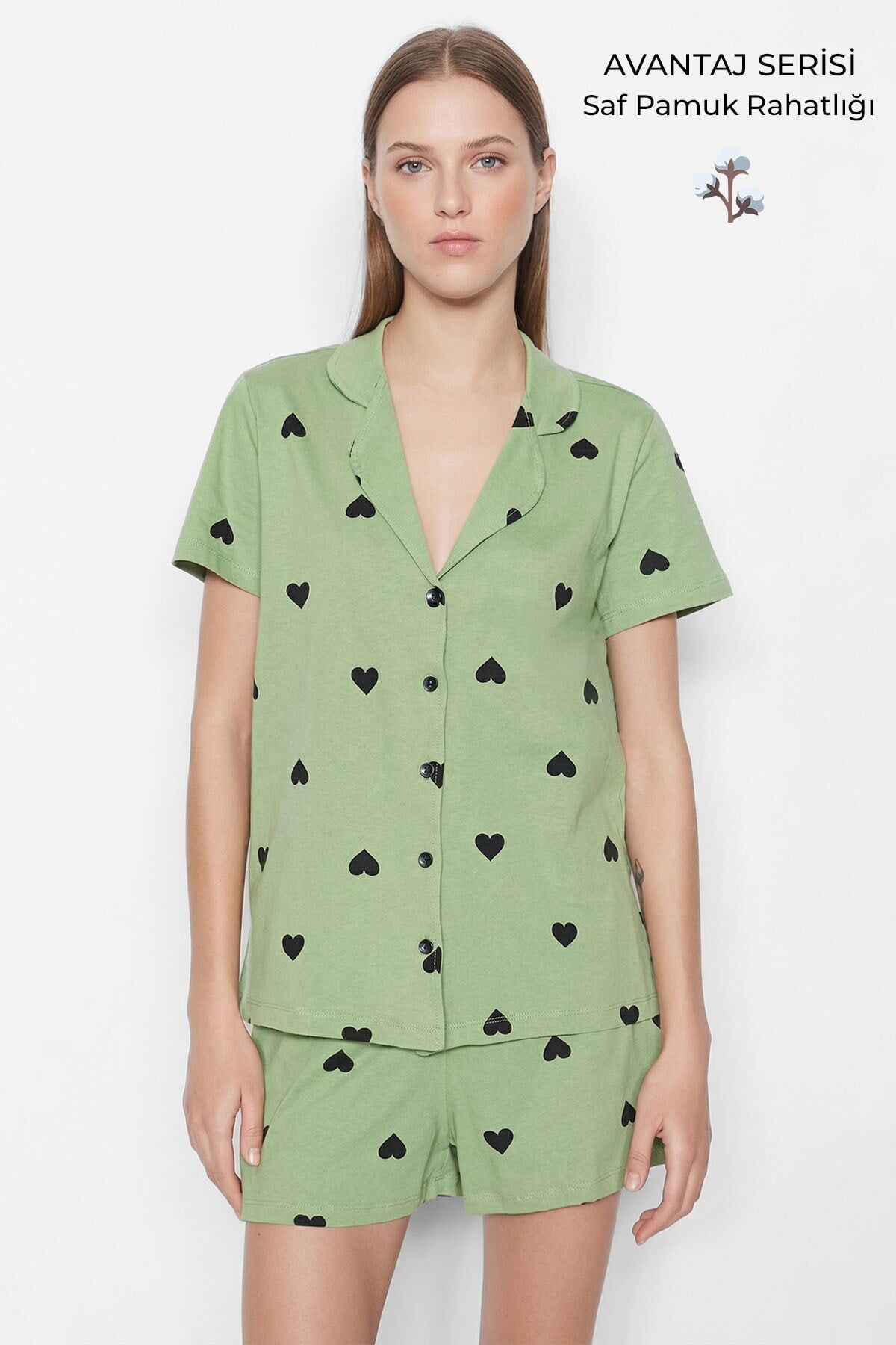 Kadın kalpli pijama takımı arayanlar için hem estetik hem de konfor odaklı olarak tasarlanan bu model, yazlık pijama takımı kategorisinde şık ve rahat bir alternatif sunar.