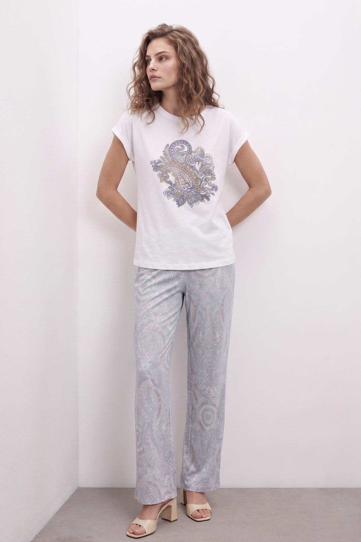 Şal desen detayları ile modern ve şık bir görünüm kazanan ürün, kısa kollu üst tasarımı sayesinde sıcak havalarda serin kalmanıza yardımcı olur. Esnek kumaş yapısı vücuda uyum sağlayarak hareket özgürlüğünü destekler.