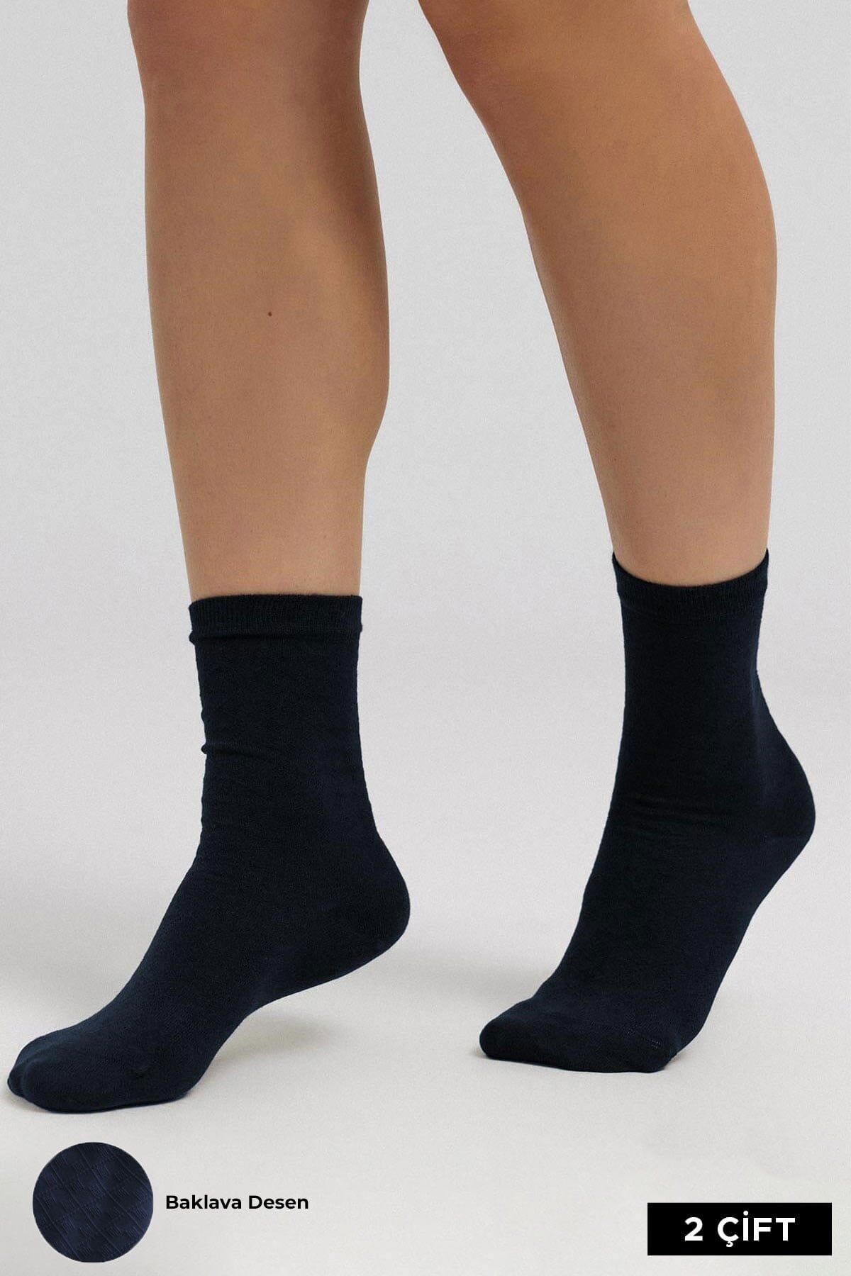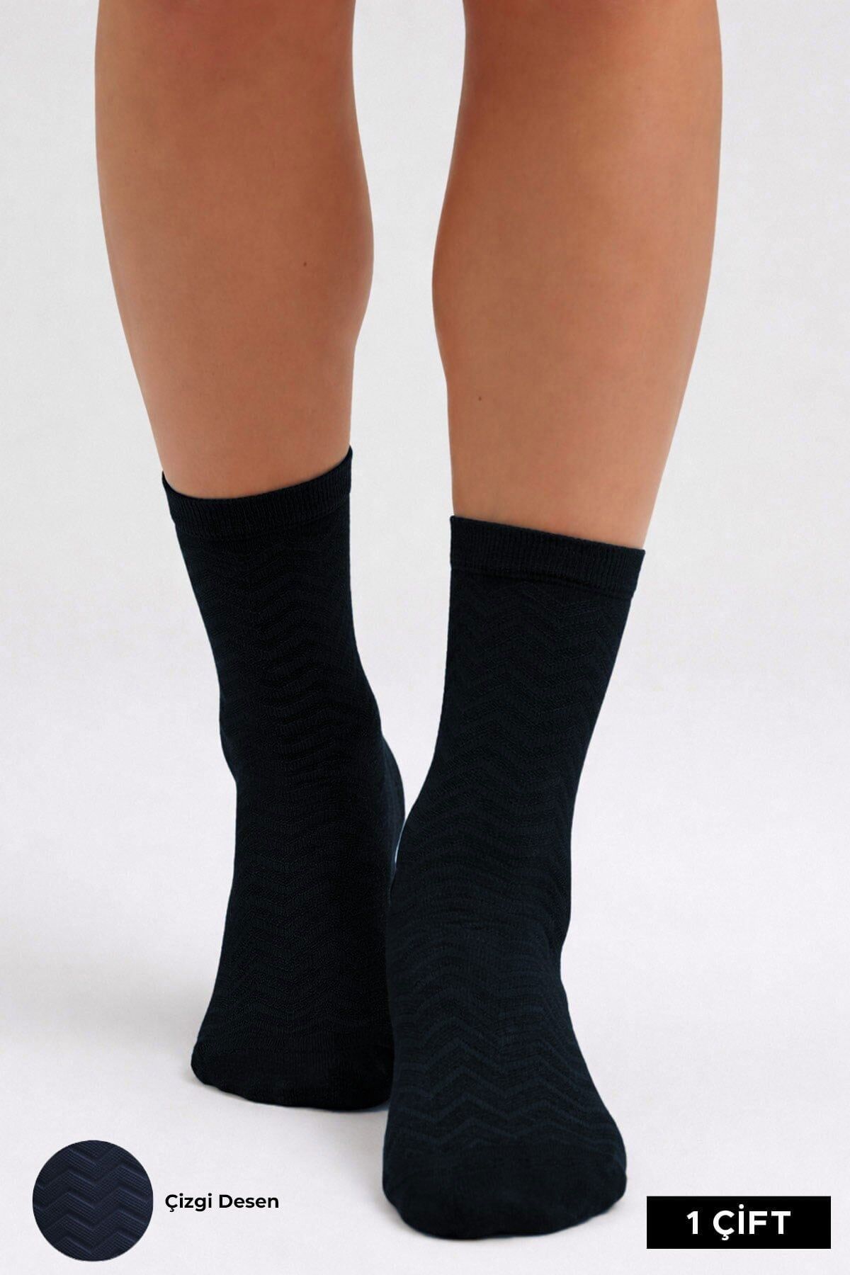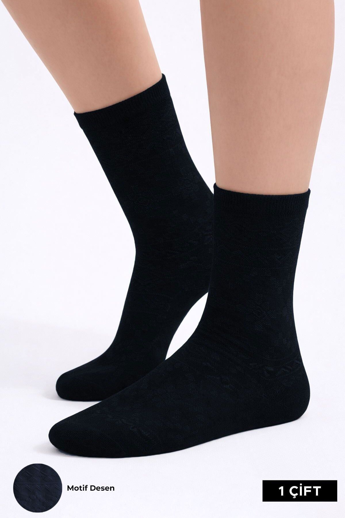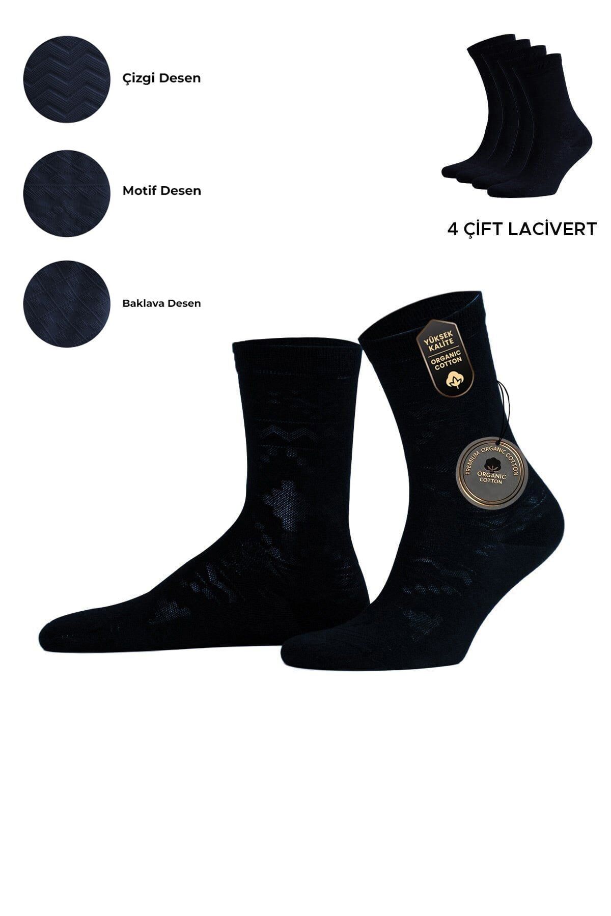 Mısırlı Kadın Pamuklu 4 Çift Motif Desenli Soket Çorap Lacivert