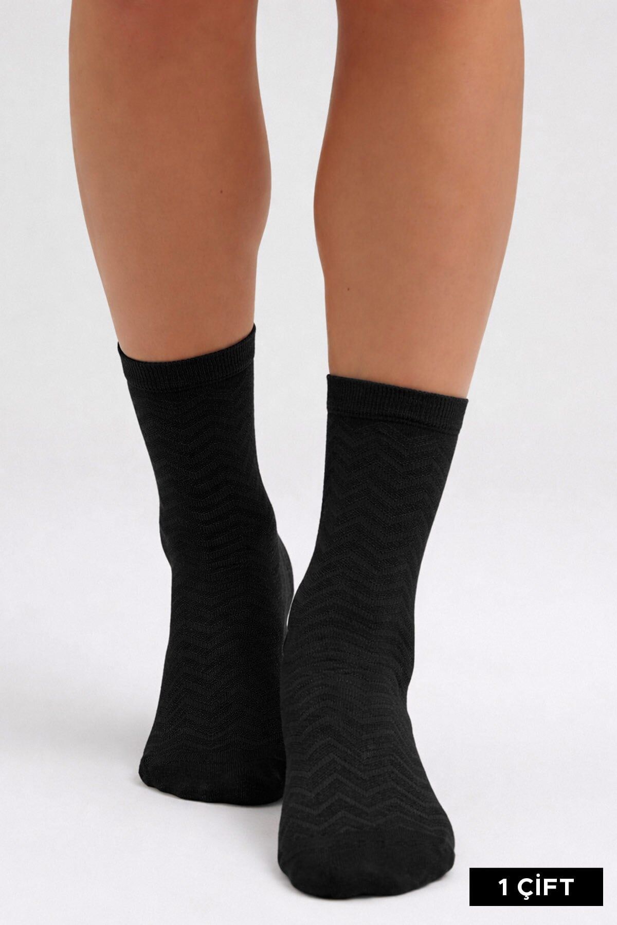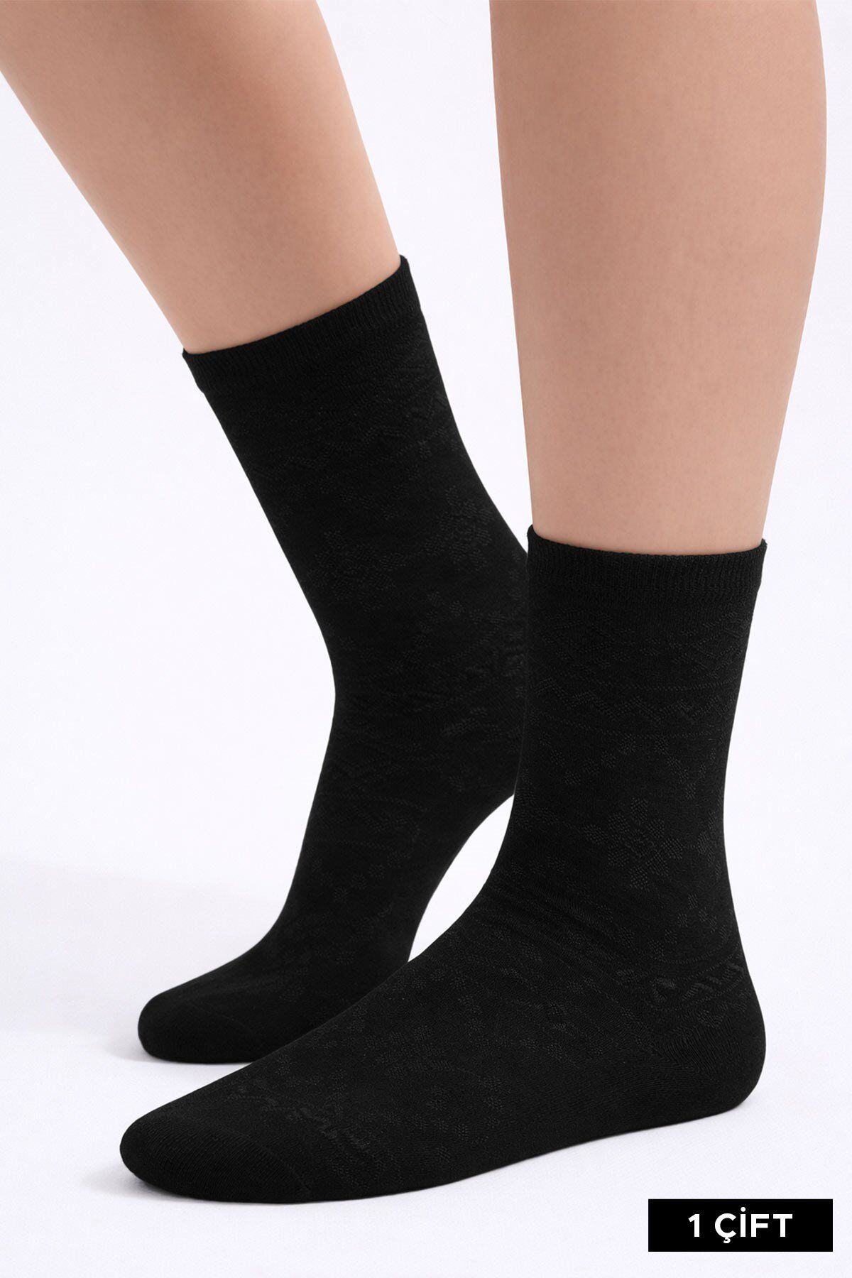 Mısırlı Kadın Pamuklu 4 Çift Motif Desenli Soket Çorap Siyah