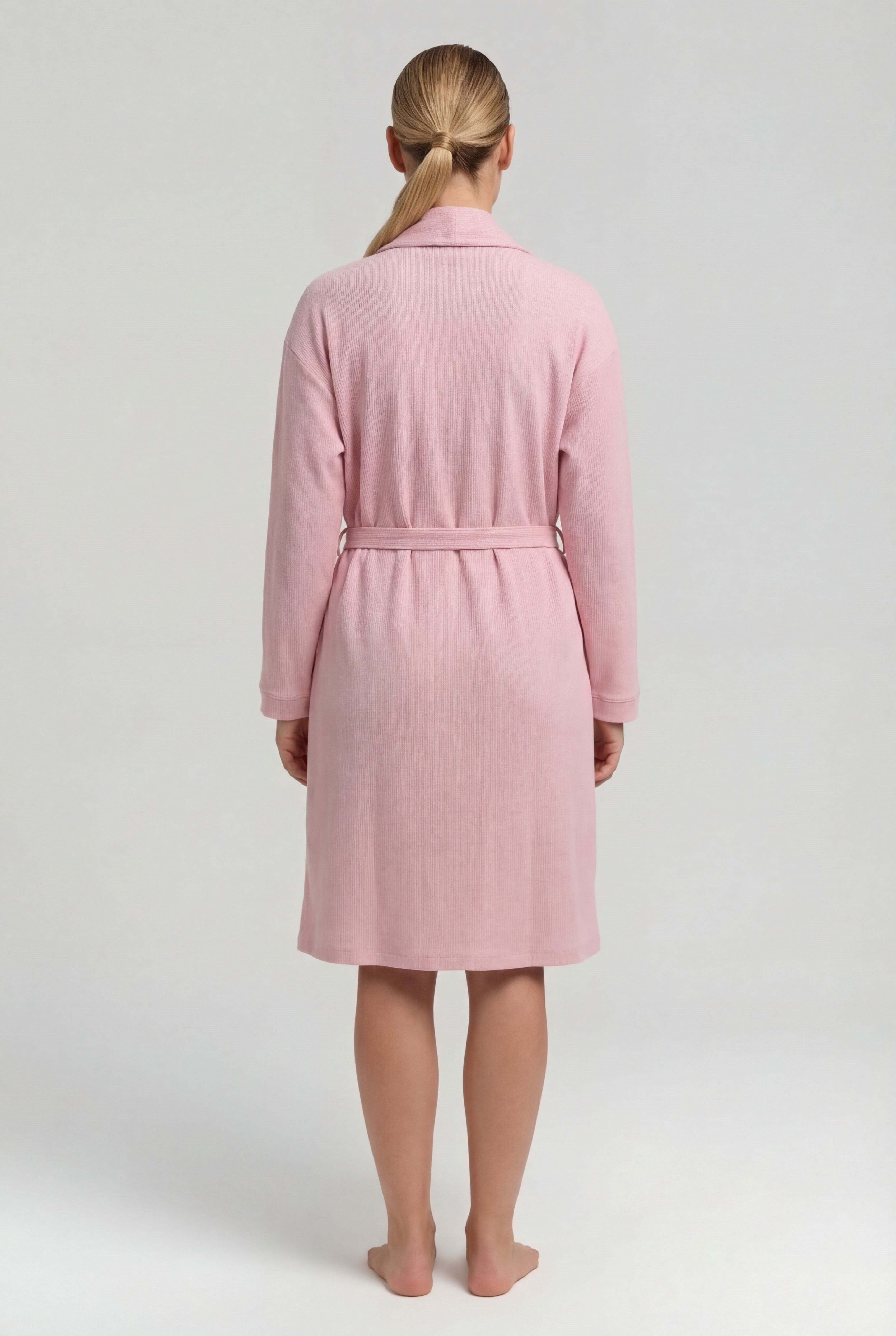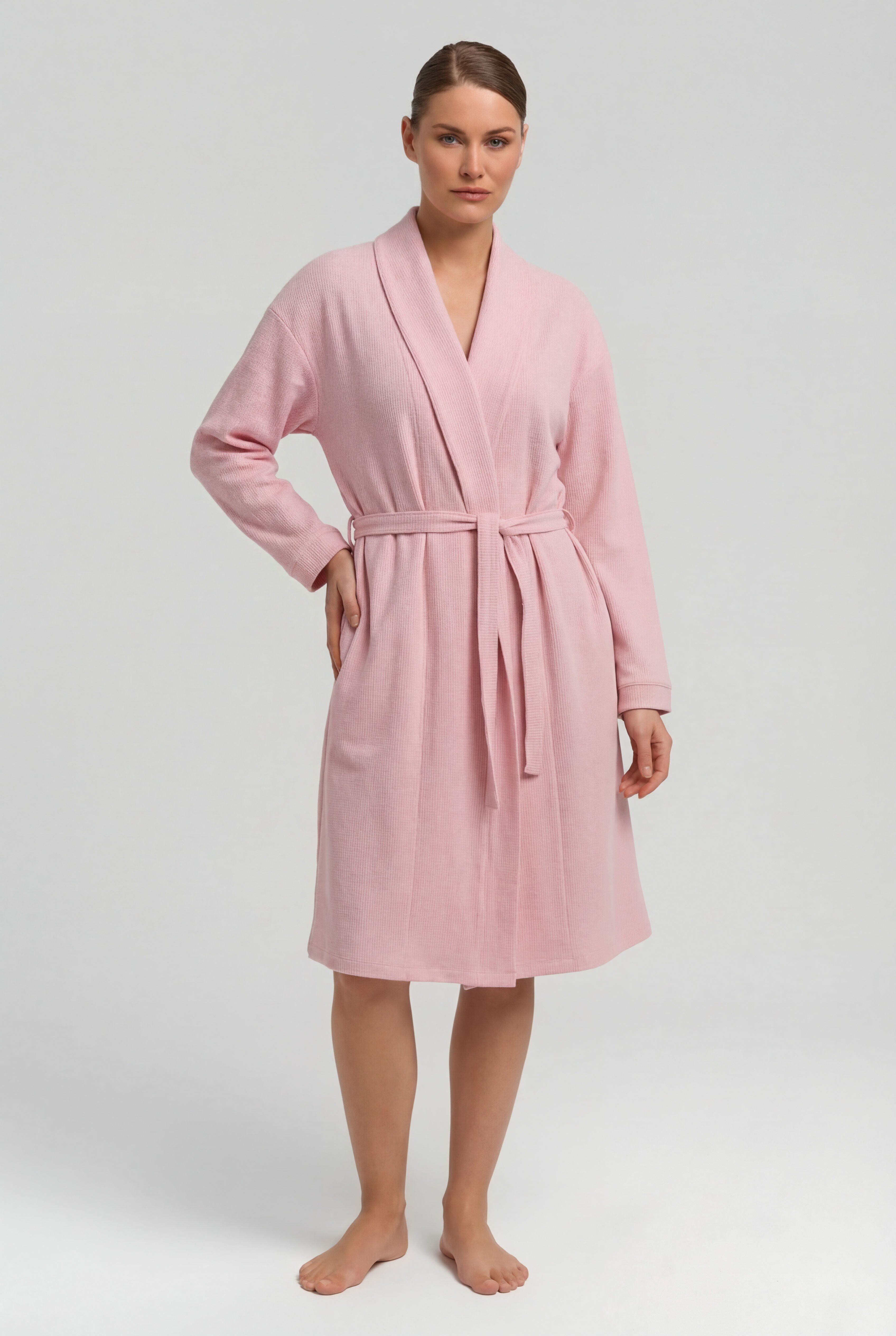 Mısırlı Kadın Pamuklu Waffle Kısa Sabahlık Açık Pembe