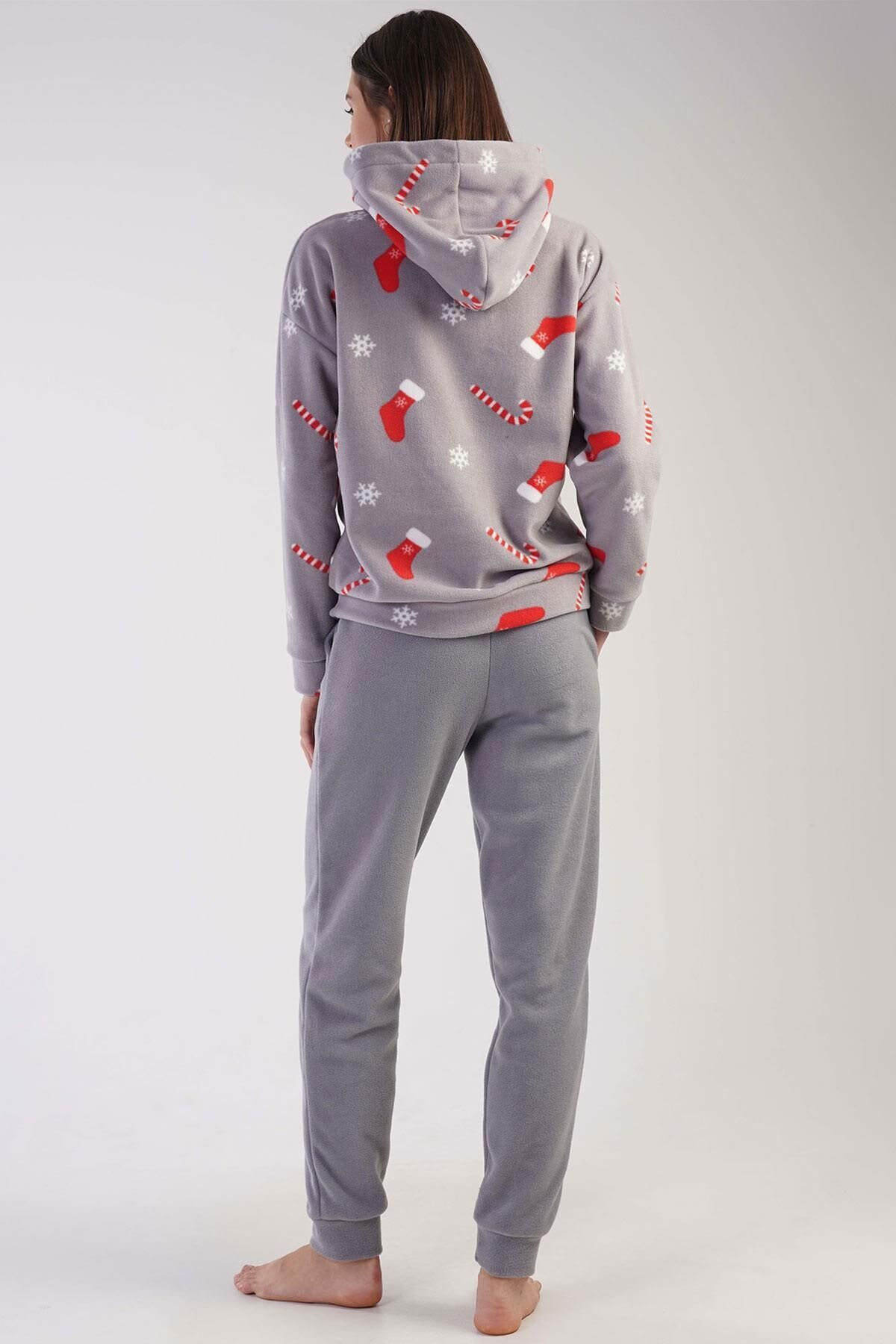 Mısırlı Kadın Polar Yılbaşı Temalı Kapüşonlu Pijama Takımı