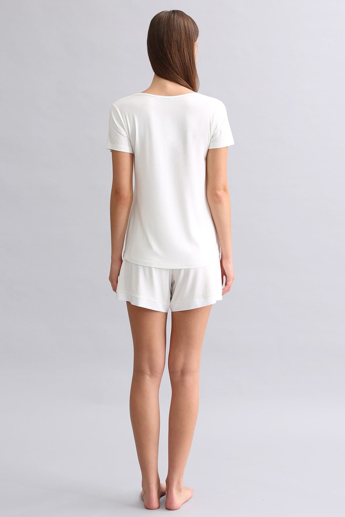 %94 Viscose %6 Elastane Kadın T-Shirt ve Şort Pijama Takımı