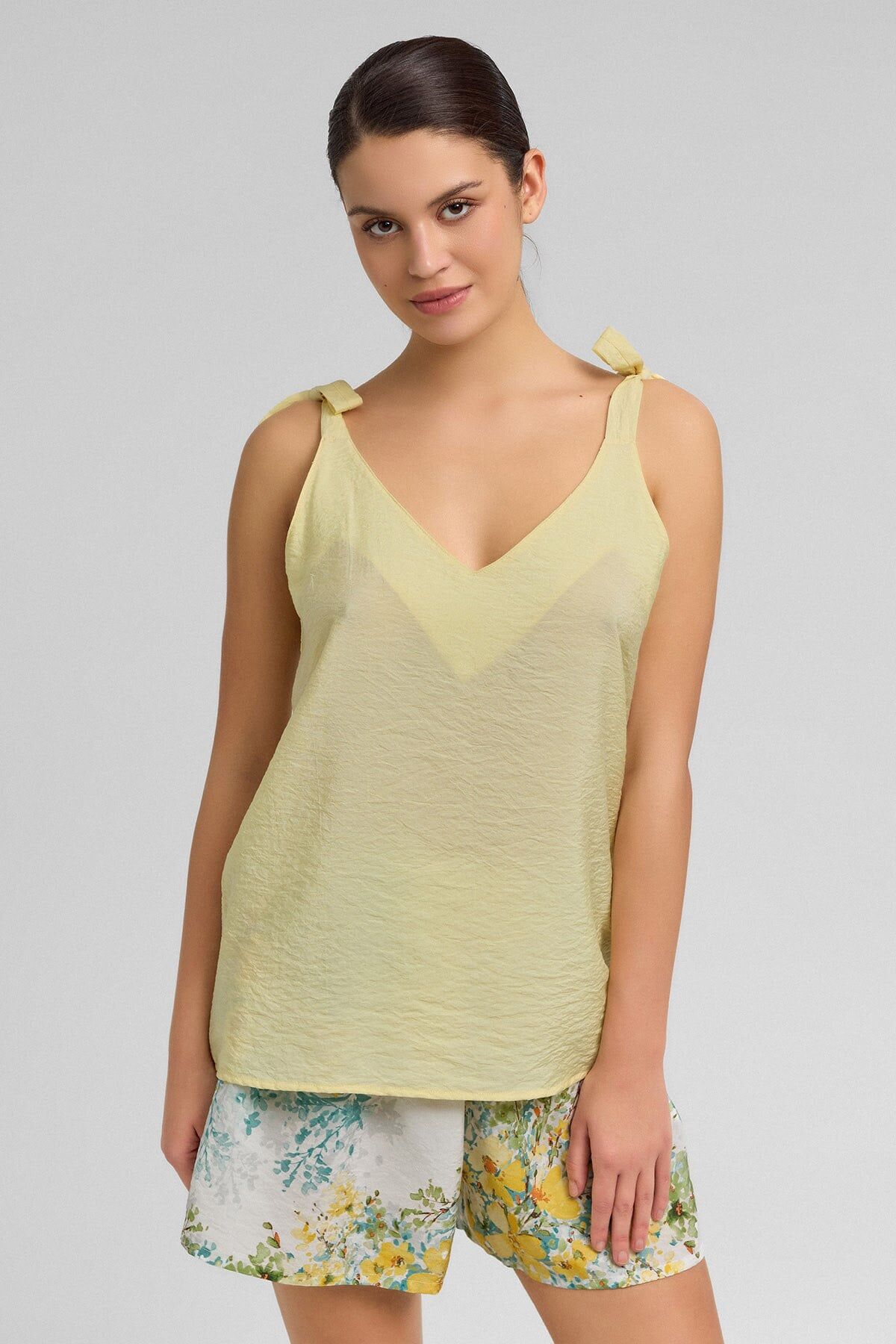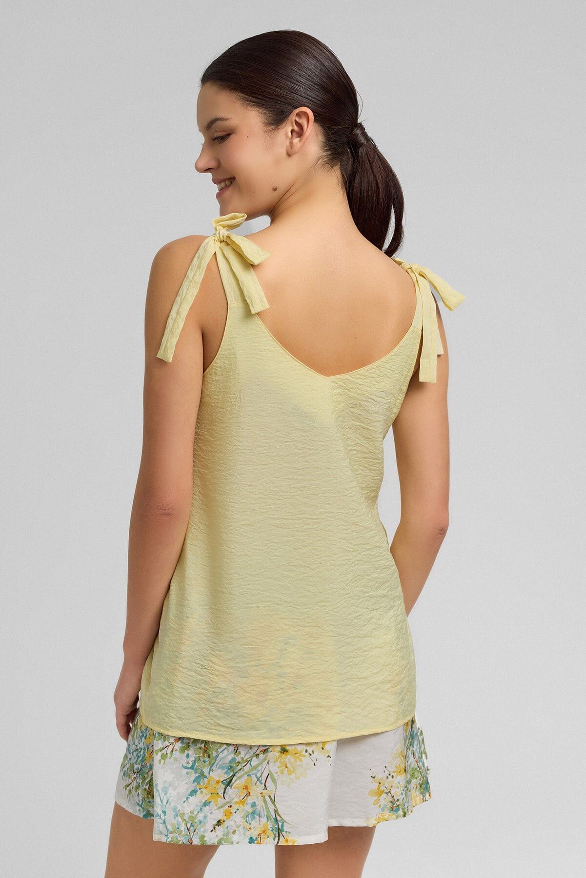 %85 viscose ve %15 naylon karışımlı dokuma kumaştan üretilen bu atlet şort takımı, hafif ve konforlu yapısıyla gün boyu ve gece boyunca rahat kullanım sunar. Viscose lifinin yumuşaklığı ile naylon lifinin dayanıklılığı birleşerek uzun ömürlü ve rahat bir kumaş yapısı oluşturur.
