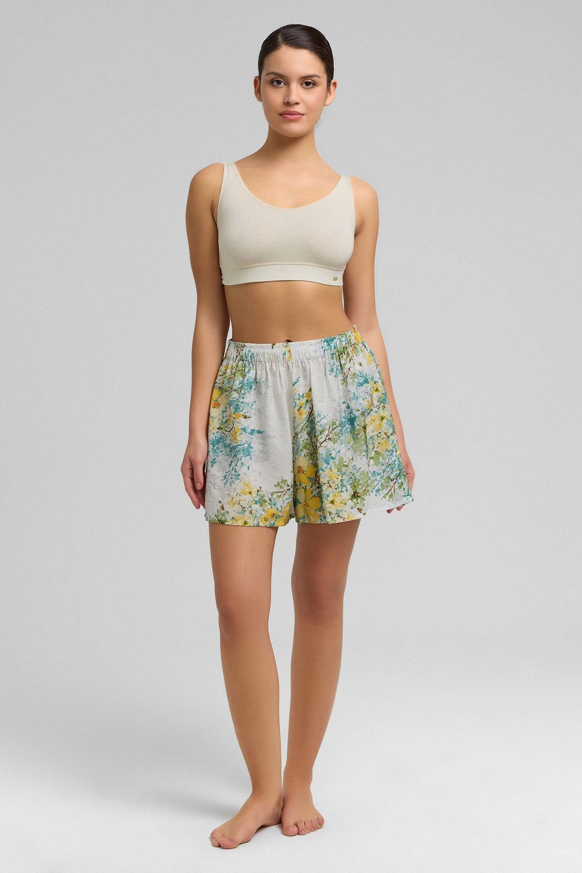 Atlet üst parçası hafif ve rahat kesimi sayesinde vücuda nazikçe otururken, şort alt parçası gün boyu konfor sağlar. Bel kısmındaki esnek lastik detayı kullanım kolaylığı ve uyumlu oturuş sunar.