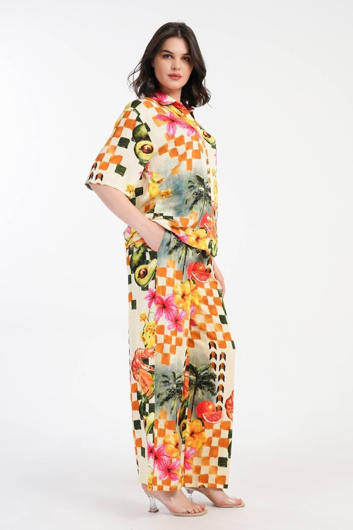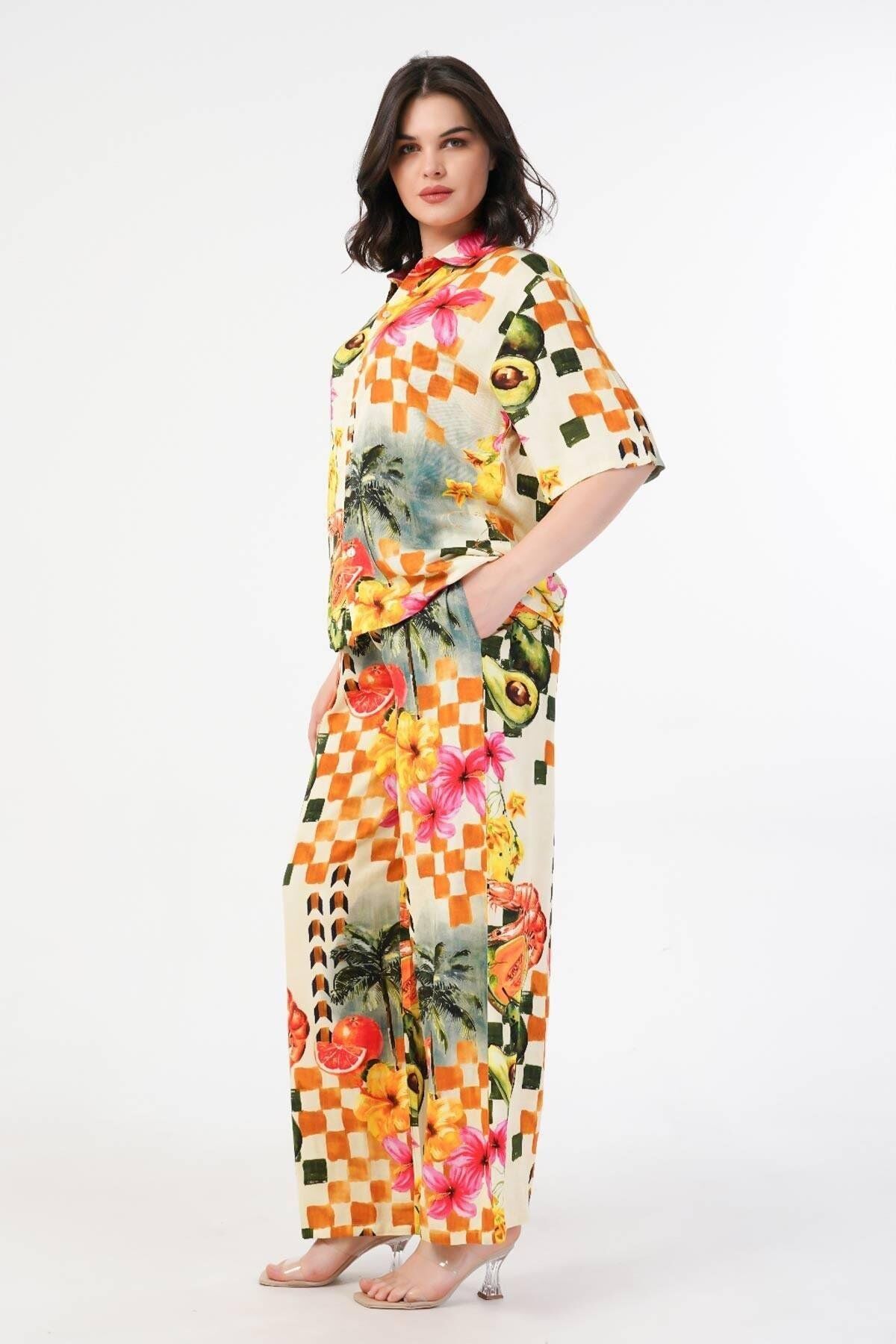 Mısırlı Kadın Viskon Kısa Kollu Gömlek Takım