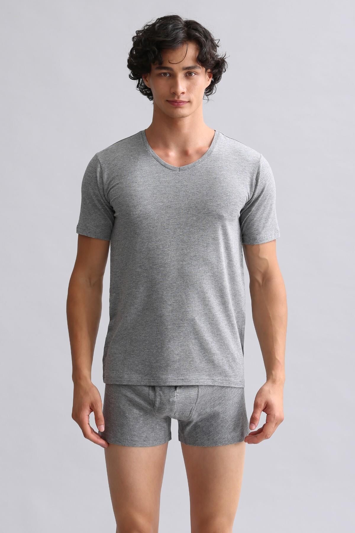 Mısırlı Modal By TENCEL HERCULES Slim Fit V Yaka Fanila / T-Shirt Gri Melanj