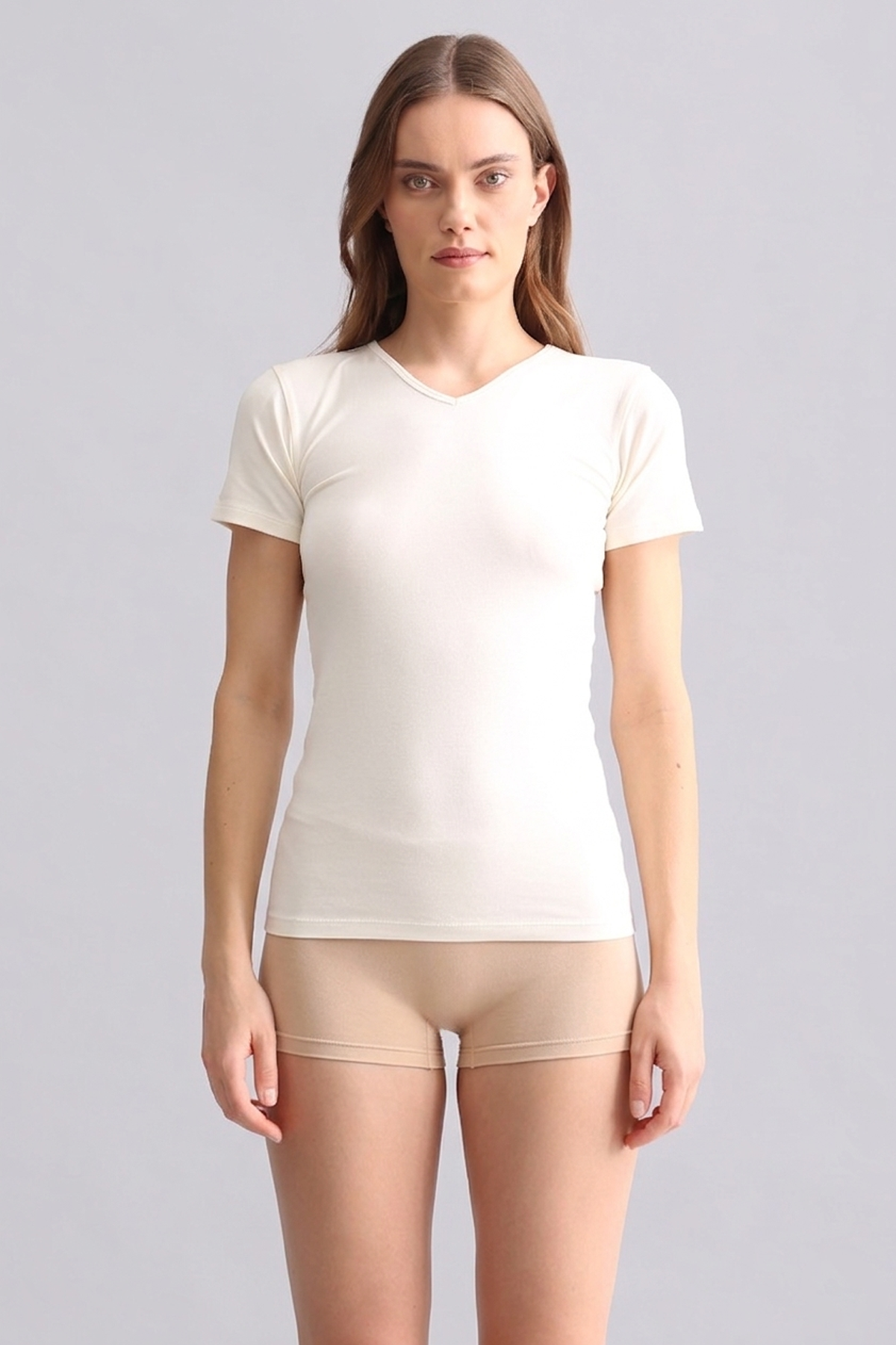 Mısırlı Modal By TENCEL VICTORIA V Yaka Fanila / T-Shirt Ekru