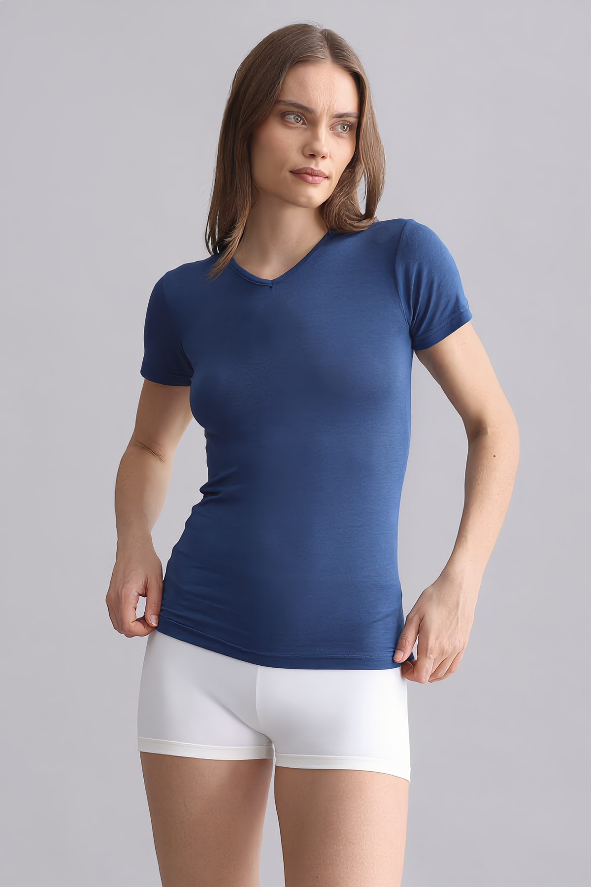 Mısırlı Modal By TENCEL VICTORIA V Yaka Fanila / T-Shirt Gece Mavisi