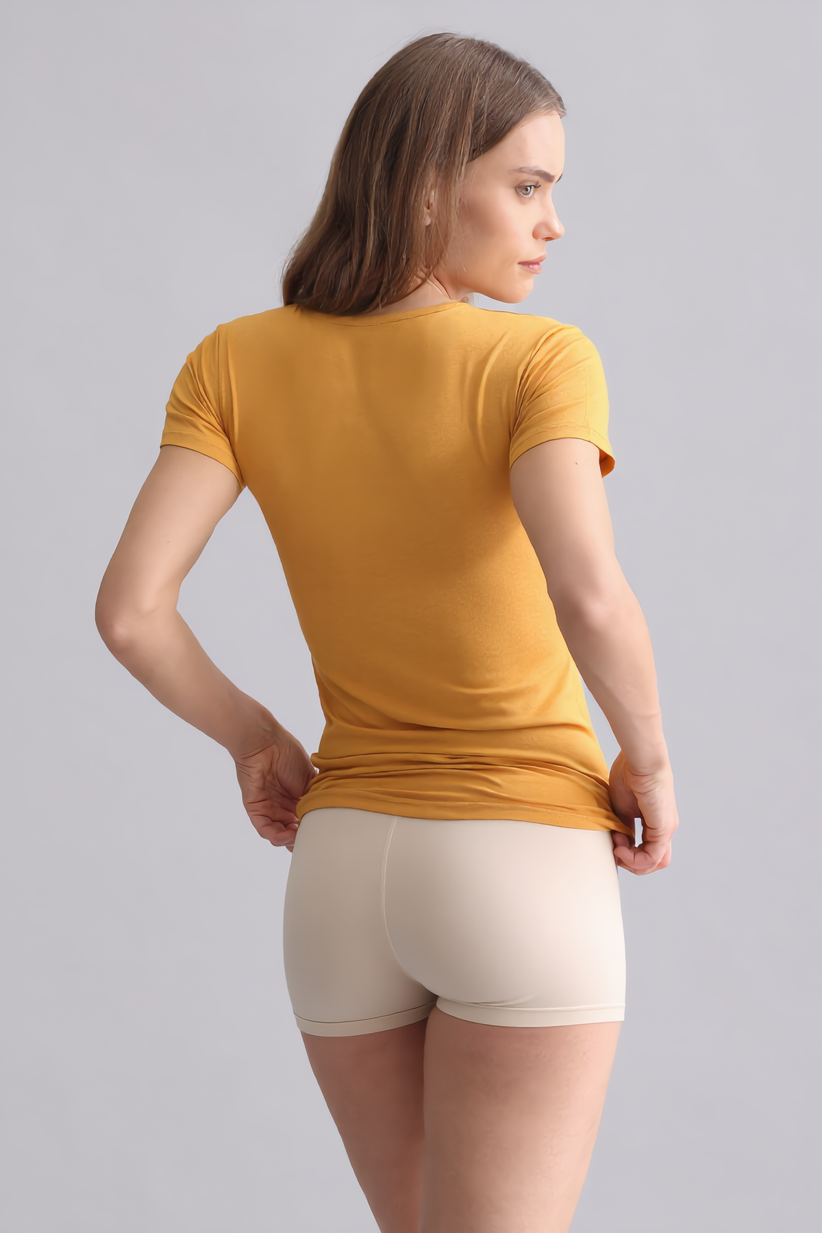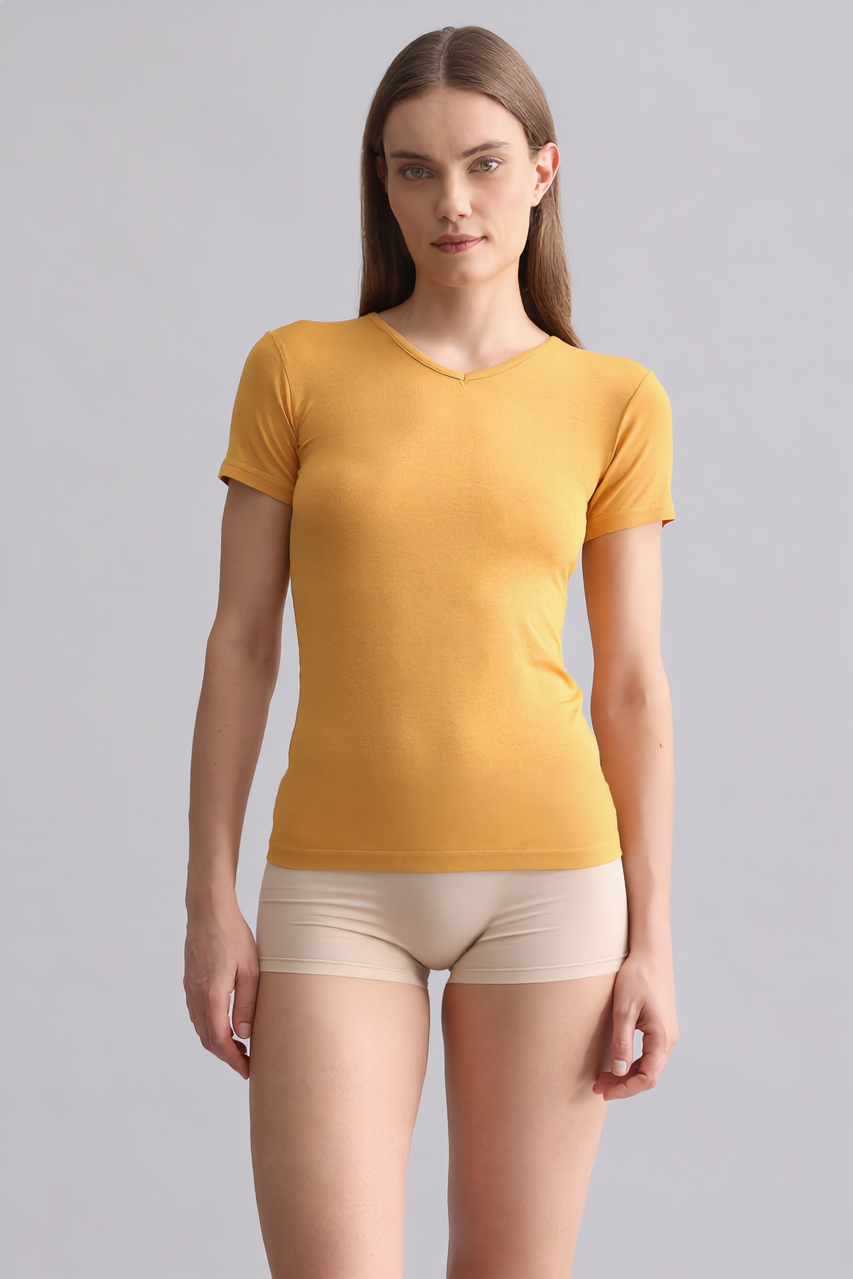 Mısırlı Modal By TENCEL VICTORIA V Yaka Fanila / T-Shirt Hardal