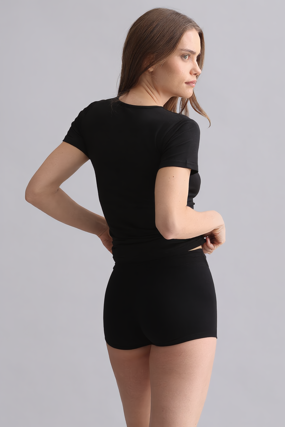 Mısırlı Modal By TENCEL VICTORIA V Yaka Fanila / T-Shirt Siyah